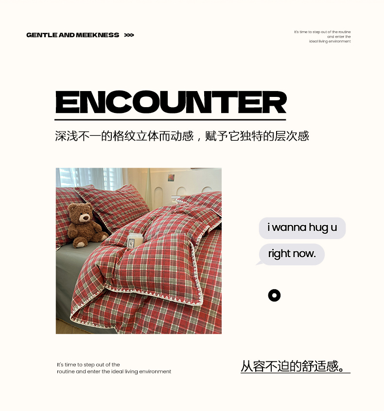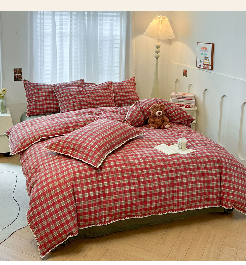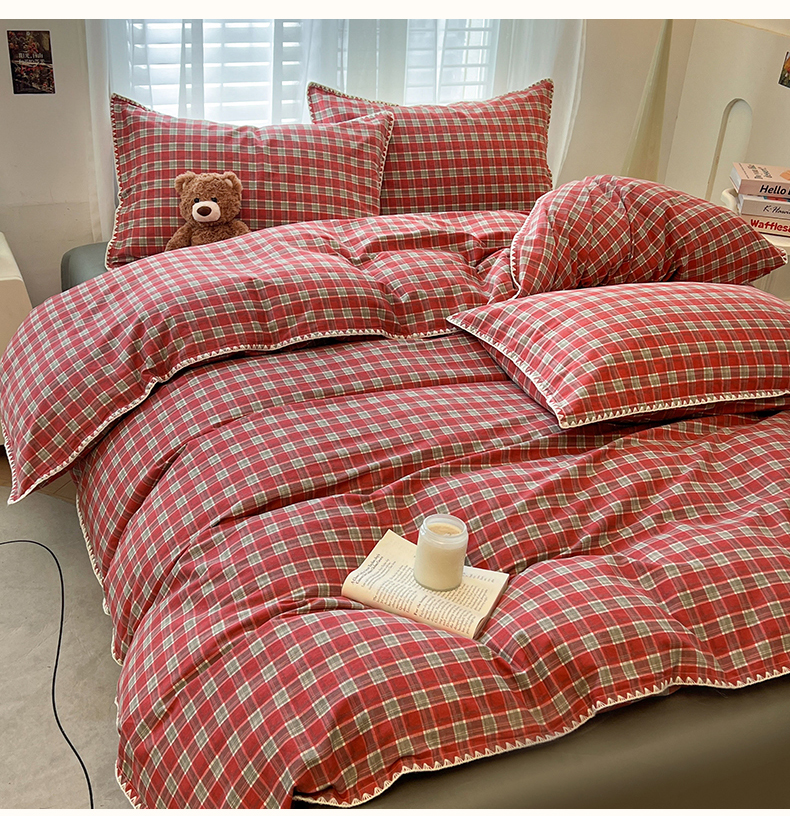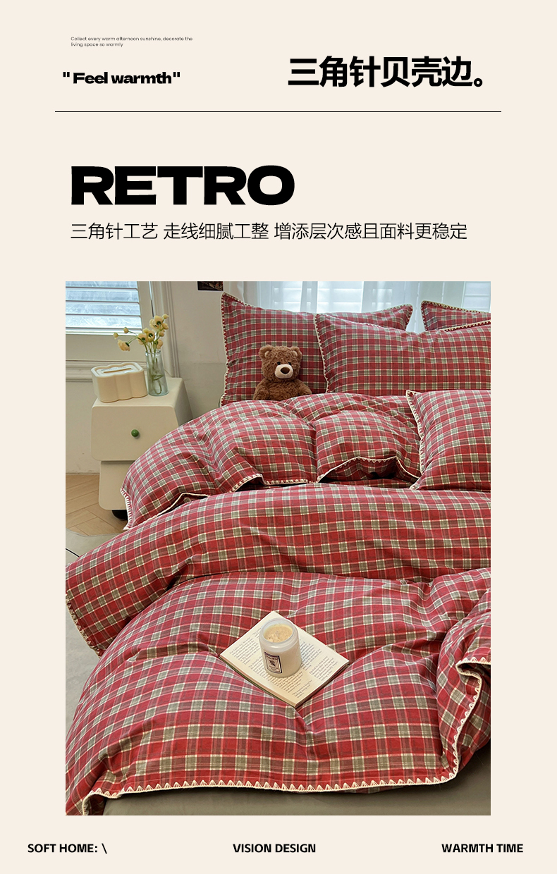 莱茵家居 2025新款全棉磨毛贝壳边四件套 暖红松影