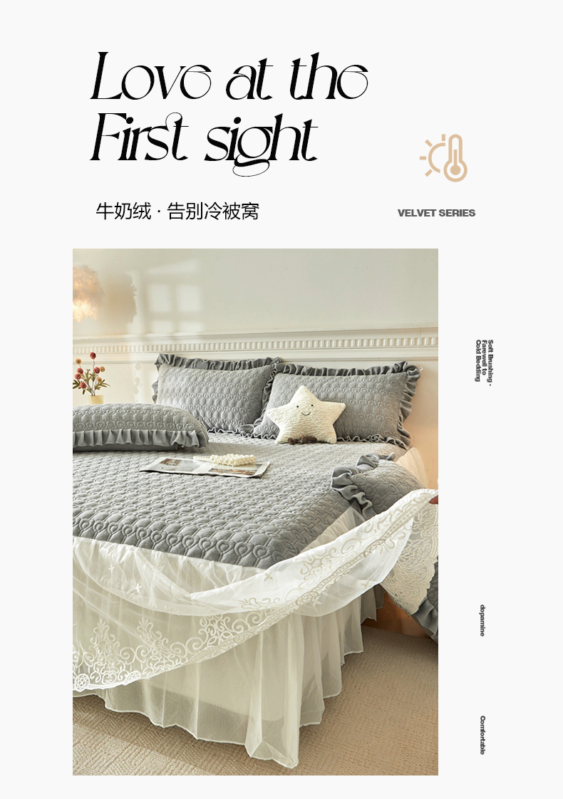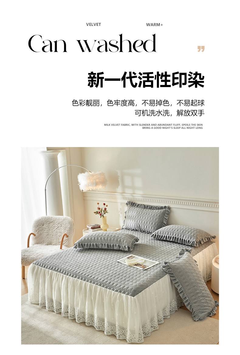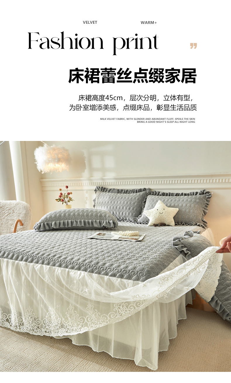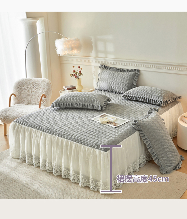 • 91家纺网 家纺一手货源 找家纺 怡源梦 2025新款A类牛奶绒夹棉床裙单件-甜心公主系列 灰色