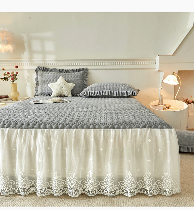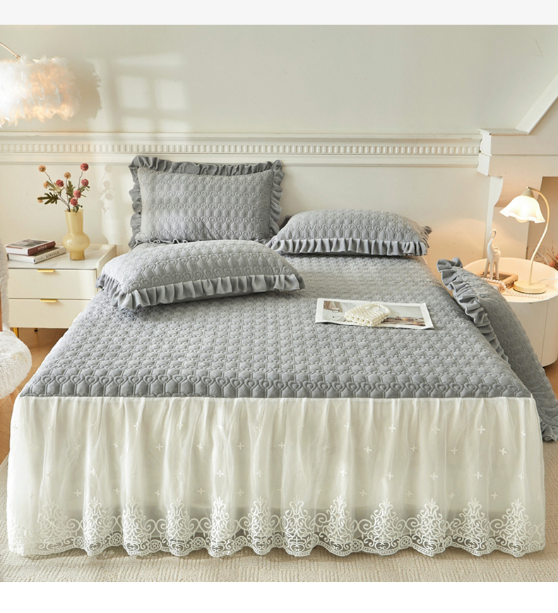 怡源梦 2025新款A类牛奶绒夹棉床裙单件-甜心公主系列 灰色