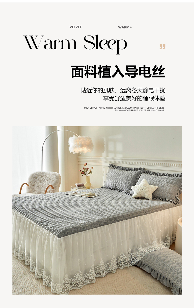 当前位置: 91家纺网 > 商品网购 > 床上用品 > 床裙 > 怡源梦 2025新款A类牛奶绒夹棉床裙单件-甜心公主系列 灰色
