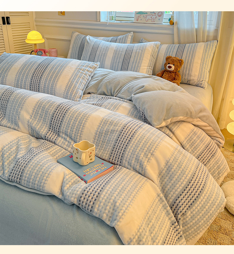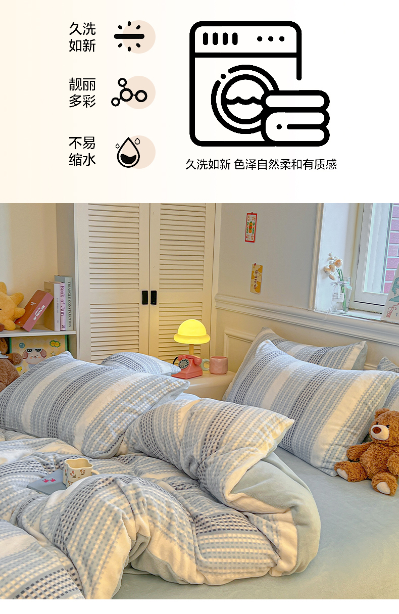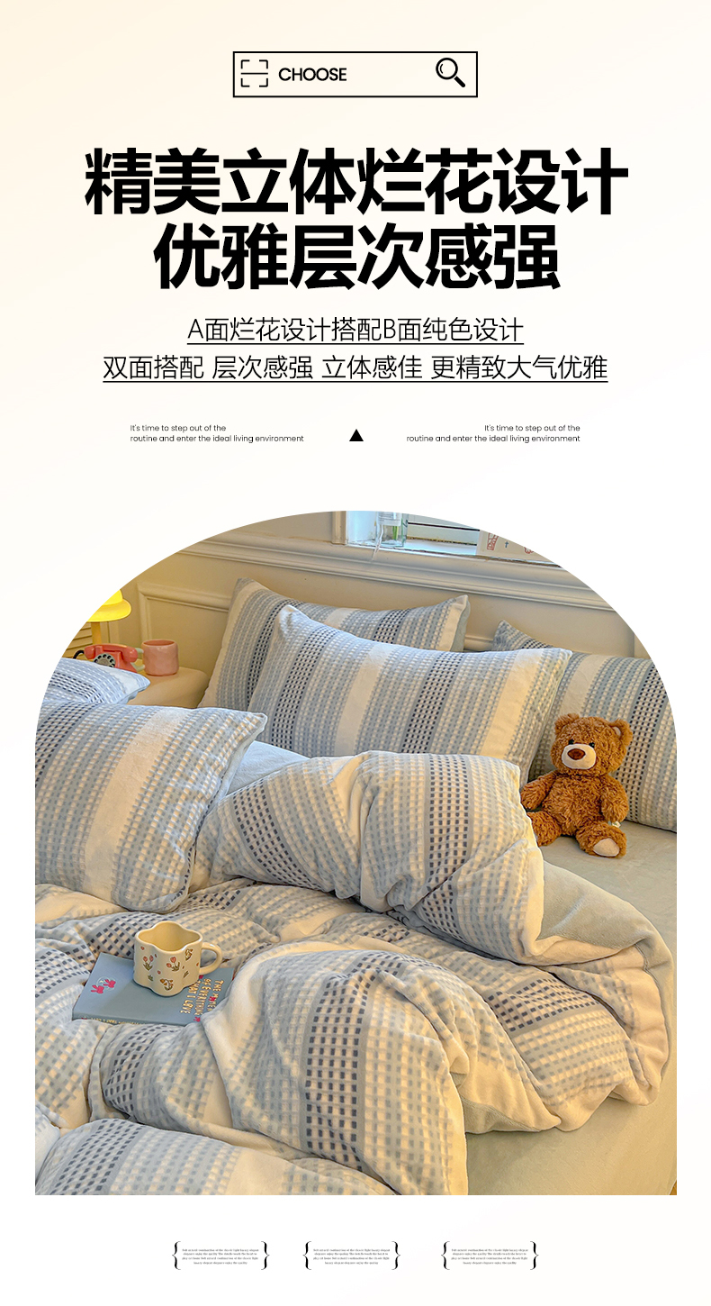 (总)莱茵家居 2025新款高克重牛奶绒烂花四件套,眠语-粉,眠语-蓝,暖格-粉,暖格-咖,暖格-蓝