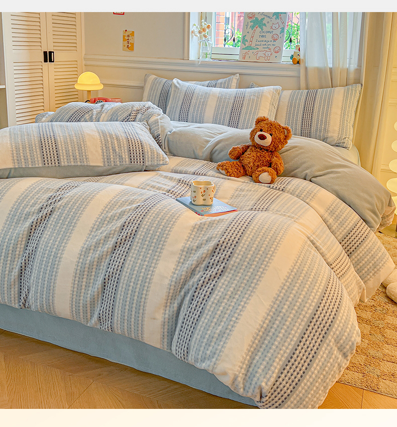 (总)莱茵家居 2025新款全棉纯棉皱皱纱条纹四件套-杼影,杼影-咖纸蓝,杼影-冷雾蓝,杼影-麦浪紫,杼影-绵云咖,杼影-奶泡粉,杼影-暖果黄,杼影-午茶绿,杼影-雨巷灰