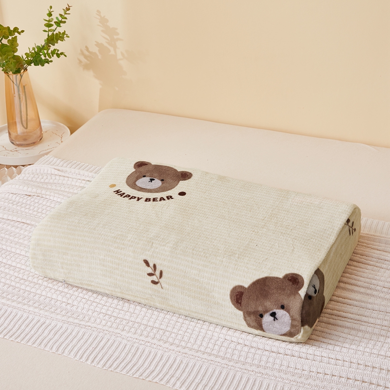 翎盈家纺 2025新款加厚高克重牛奶绒乳胶枕头套 开心小熊