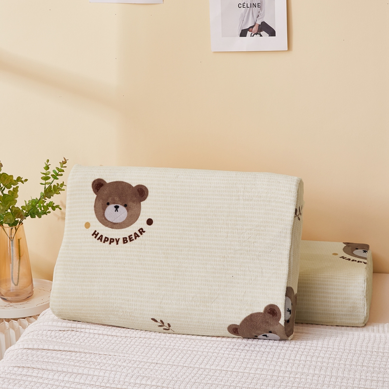 • 91家纺网 家纺一手货源 找家纺 翎盈家纺 2025新款加厚高克重牛奶绒乳胶枕头套 开心小熊