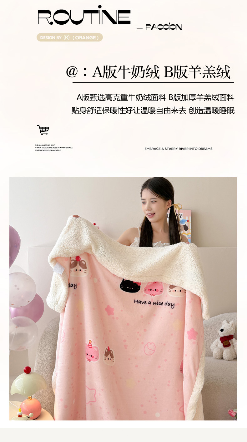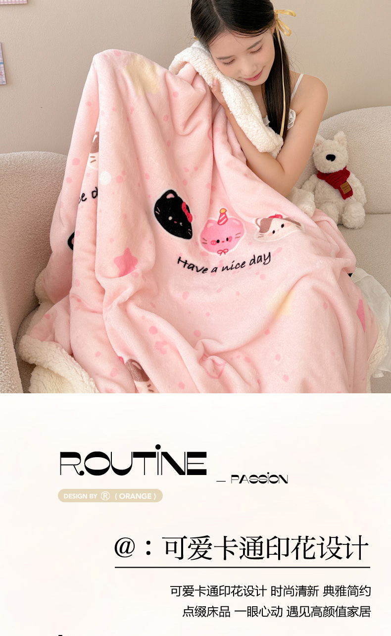 沐慕 2025新款牛奶绒拼羊羔绒毛毯盖毯毯子 毛毯-三只小猫