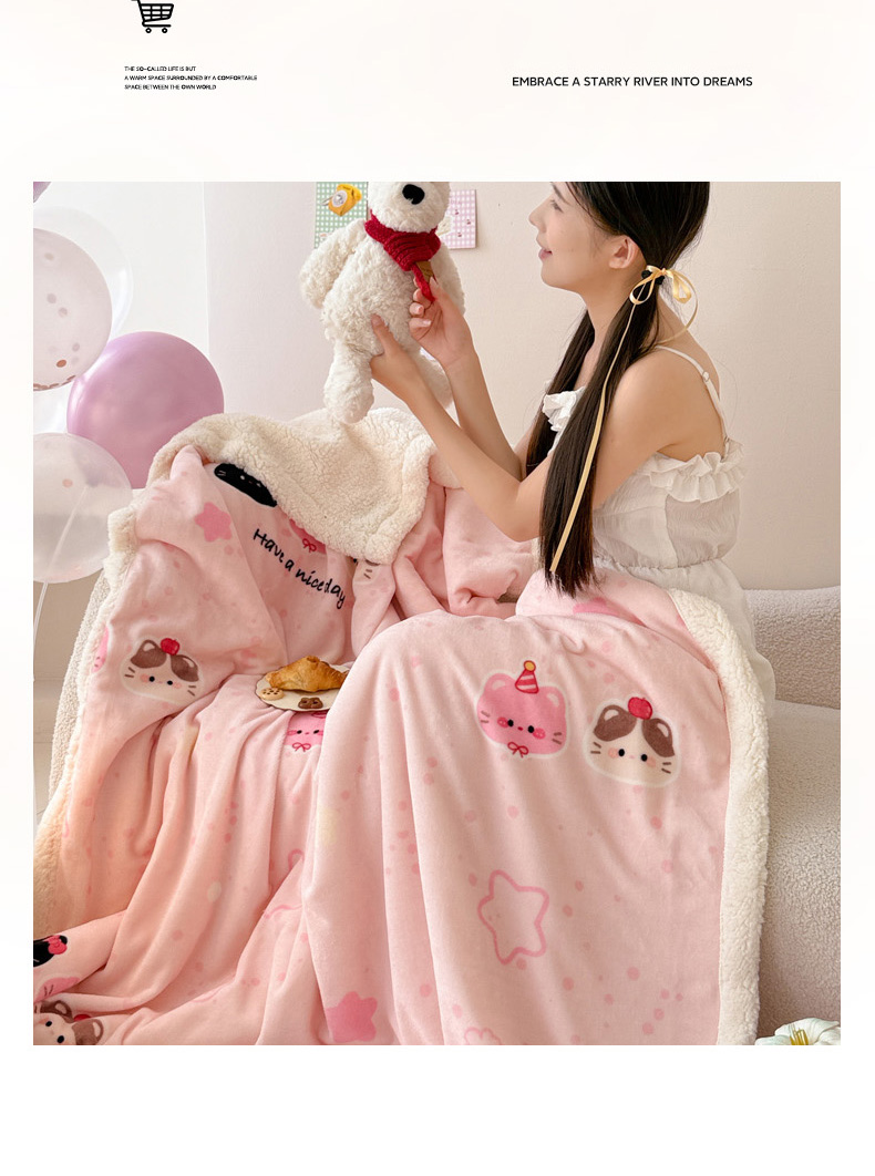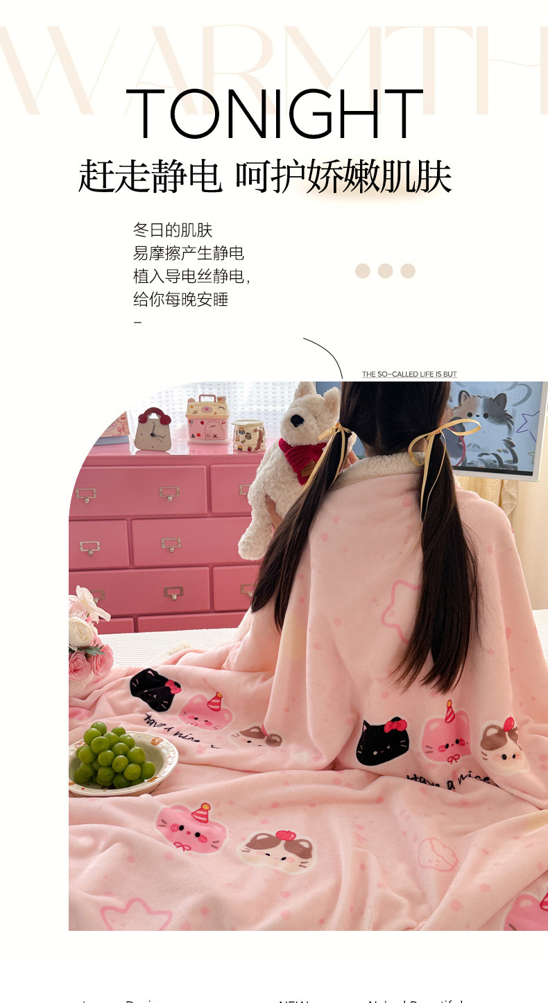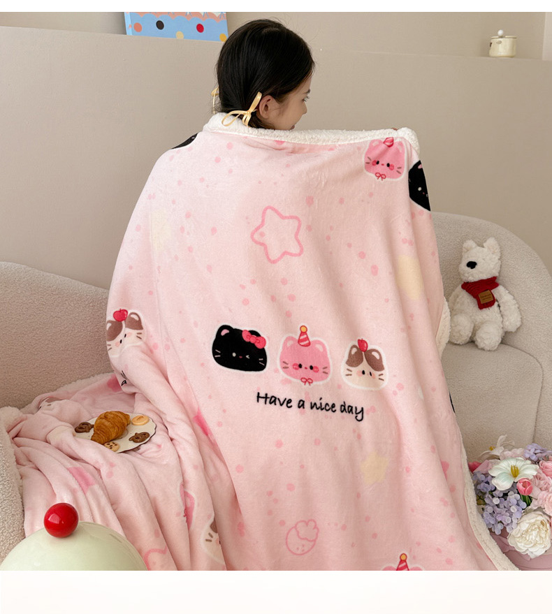 商品名称:沐慕 2025新款牛奶绒拼羊羔绒毛毯盖毯毯子 毛毯-三只小猫