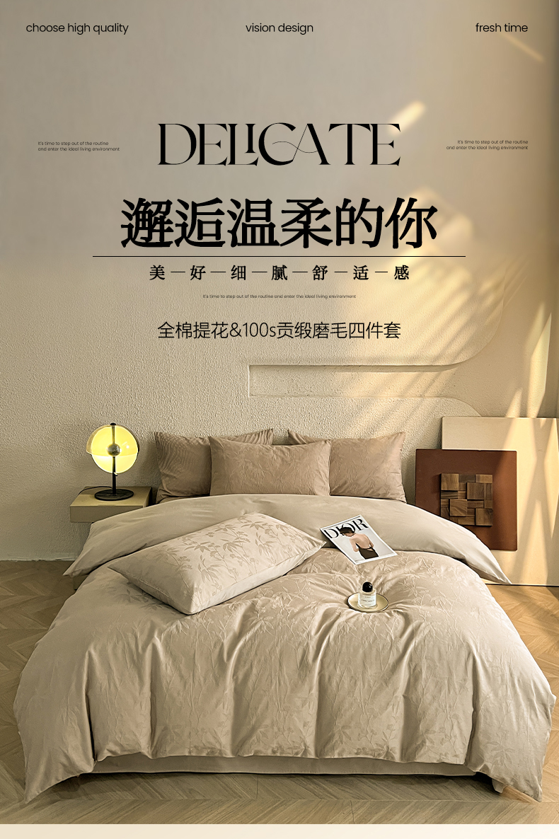 (总)莱茵家居 2025新款全棉提花贡缎磨毛四件套