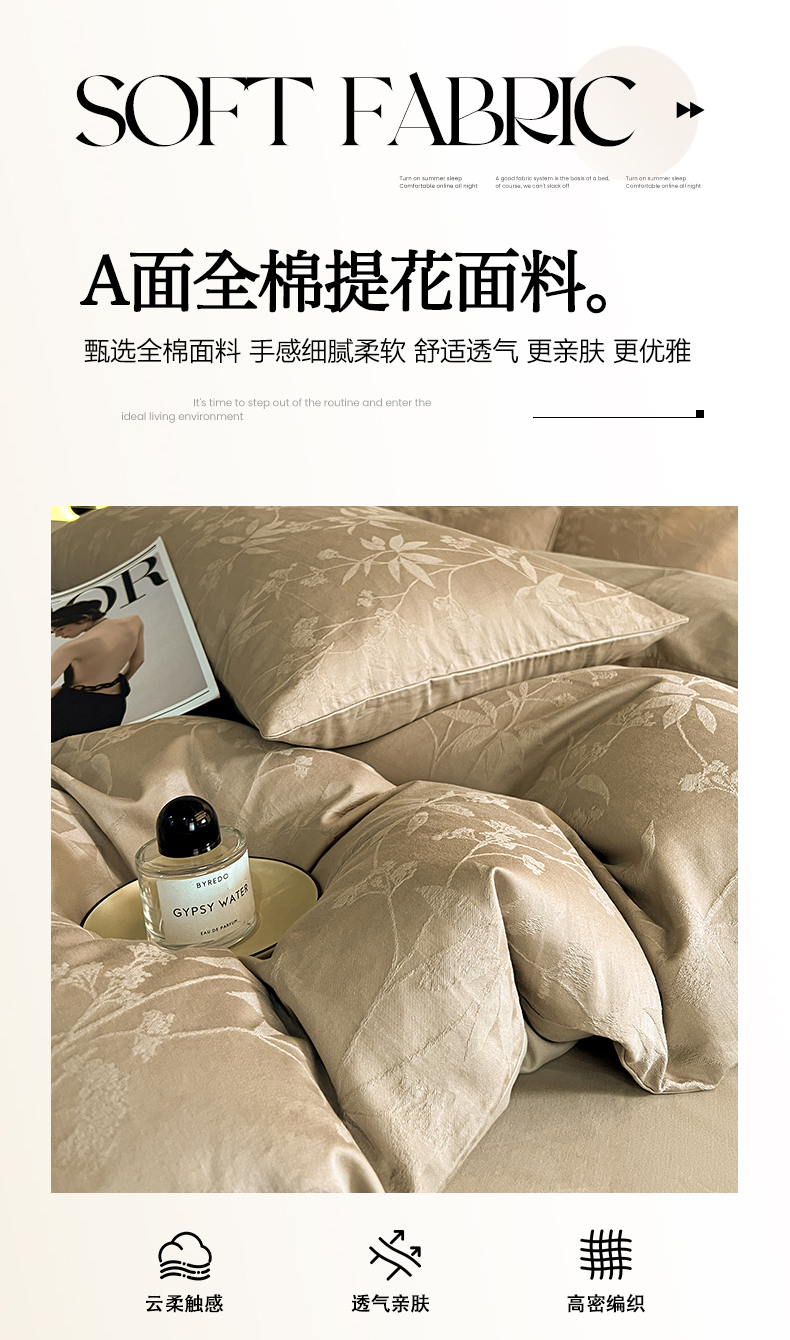 (总)莱茵家居 2025新款A类60支厚织提花美拉德风全棉纯棉四件套-暮合系列,暮合-可可,暮合-米咖,暮合-奶茶,暮合-棕榈
