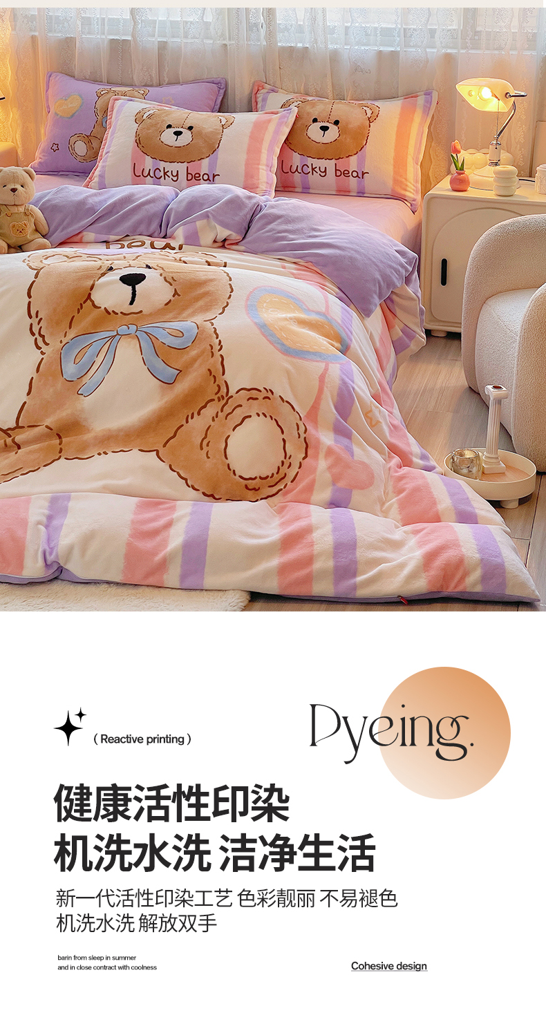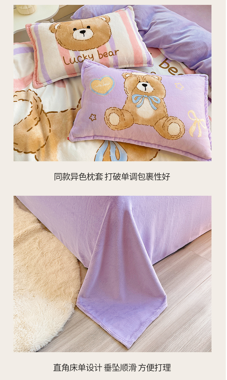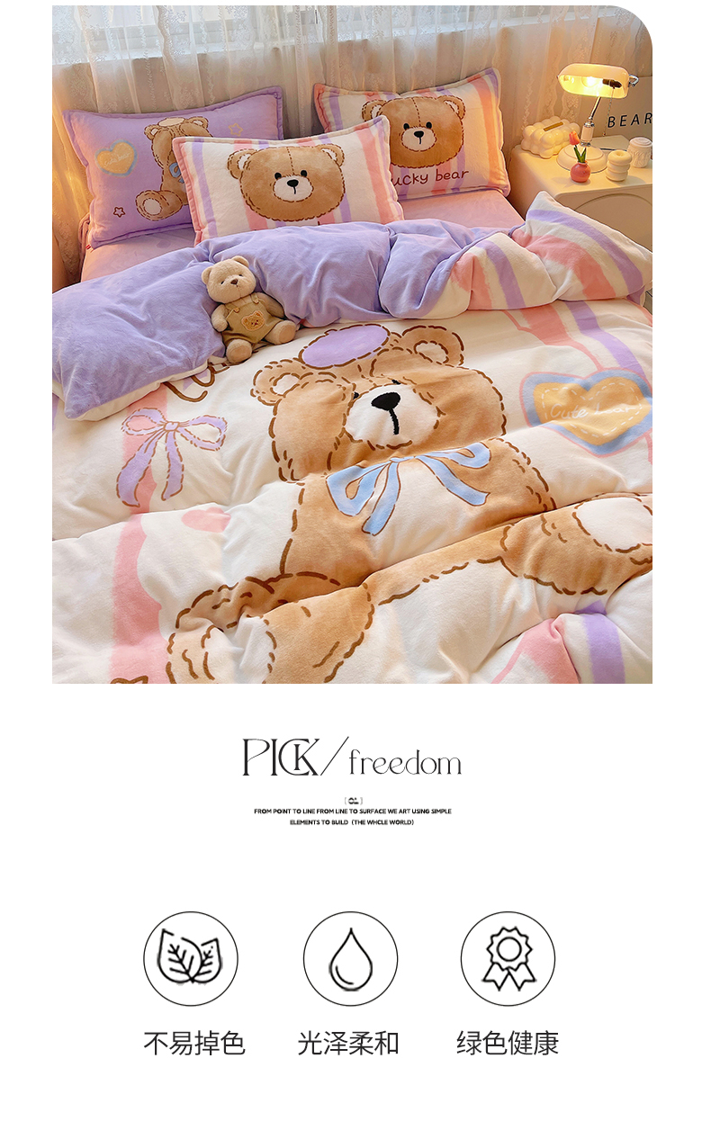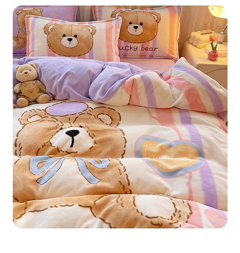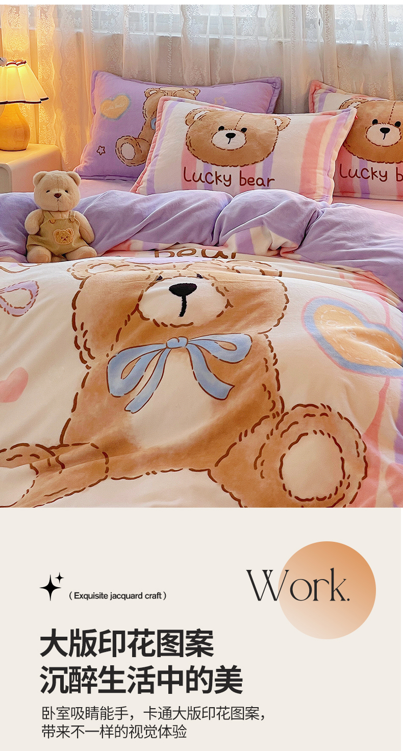 炫拼家纺 2025新款大版数码印花卡通高克重牛奶绒四件套 啵啵熊