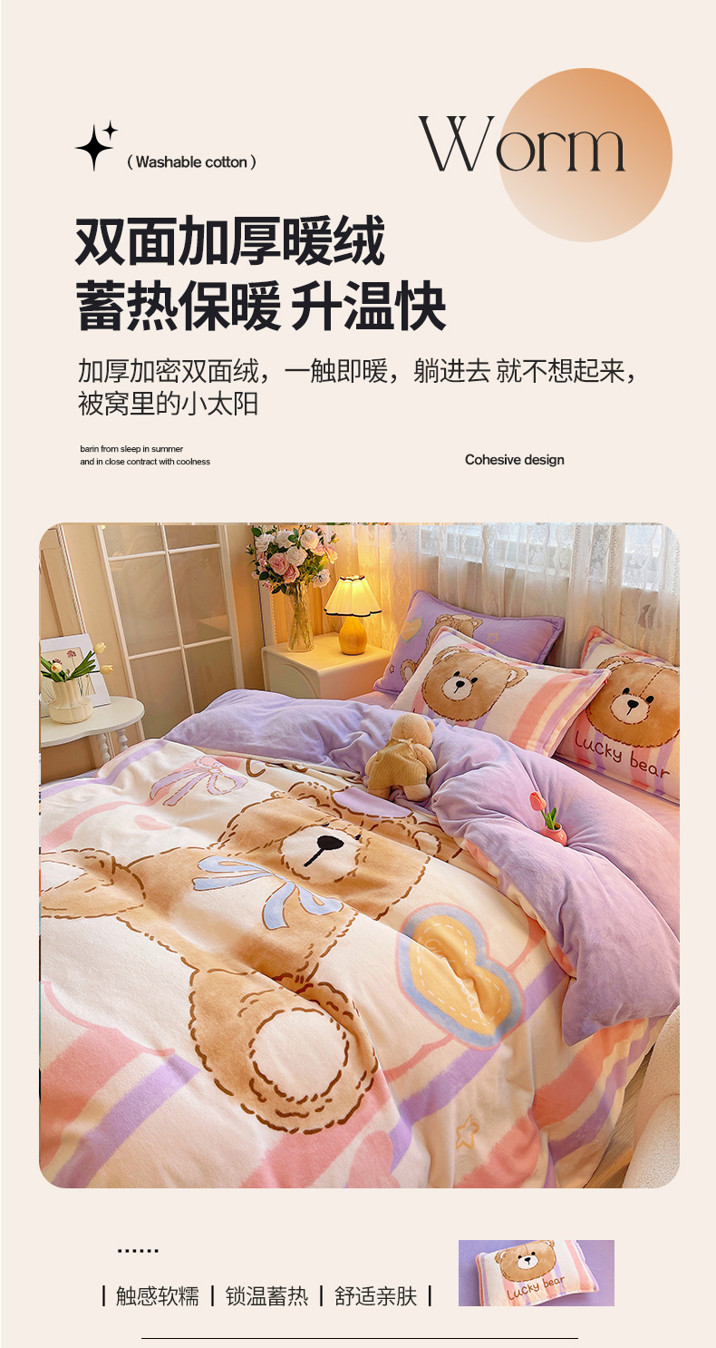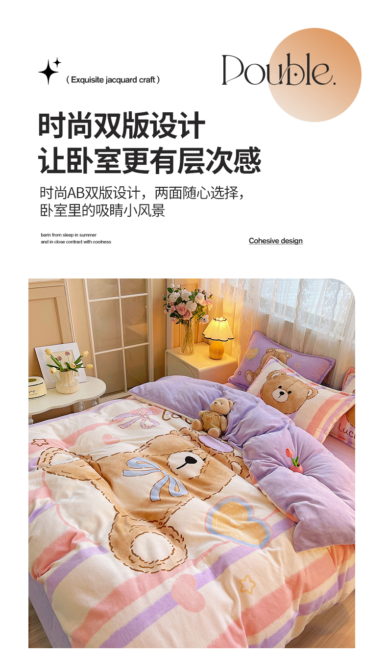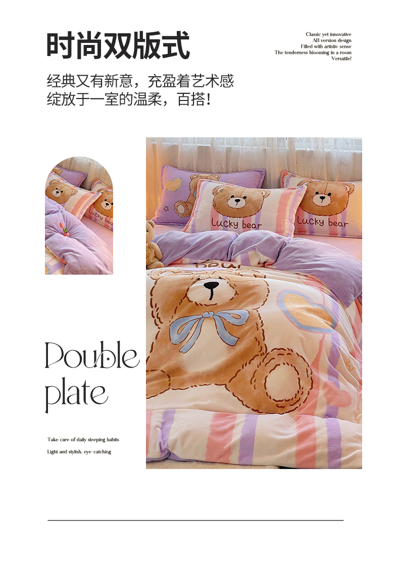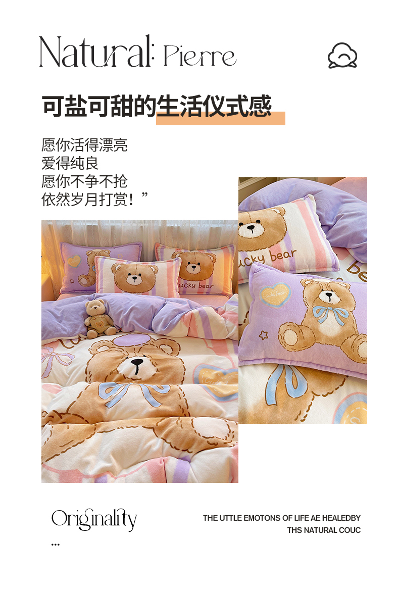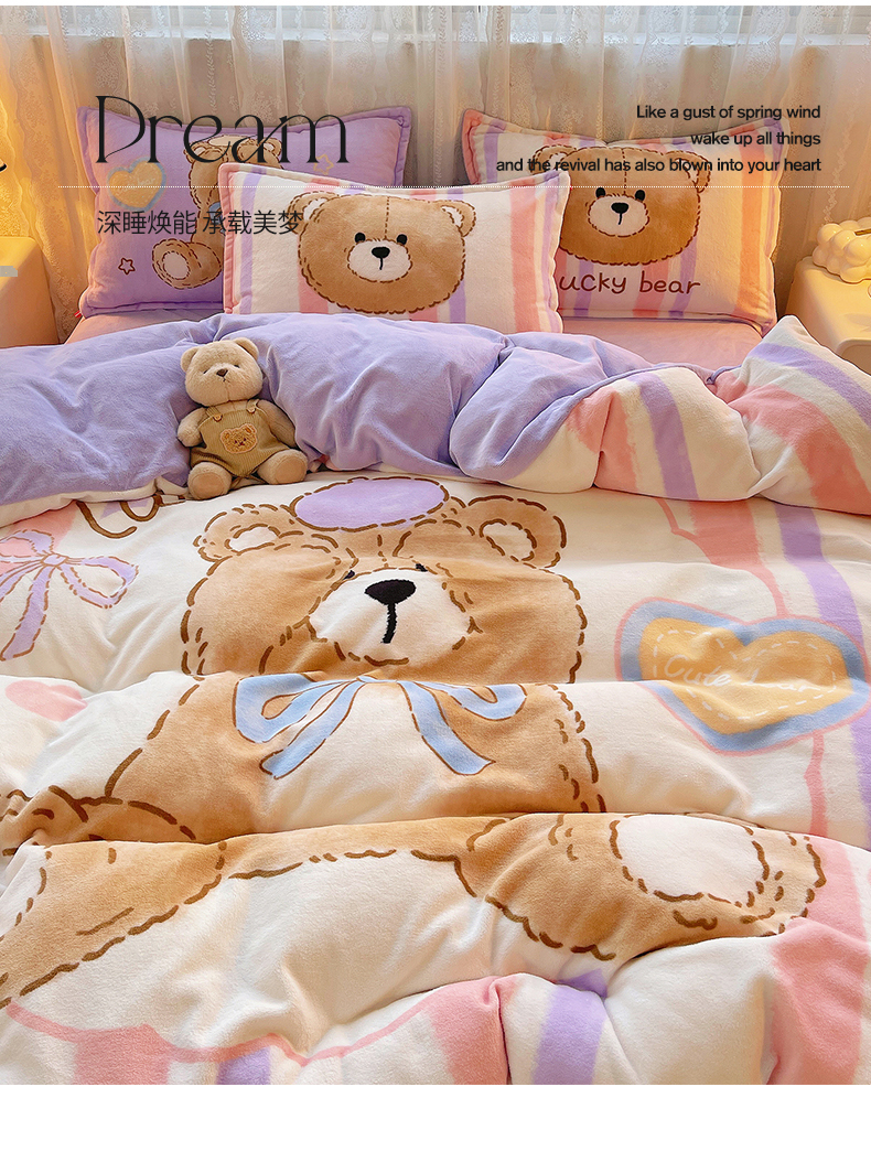 炫拼家纺 2025新款大版数码印花卡通高克重牛奶绒四件套 啵啵熊