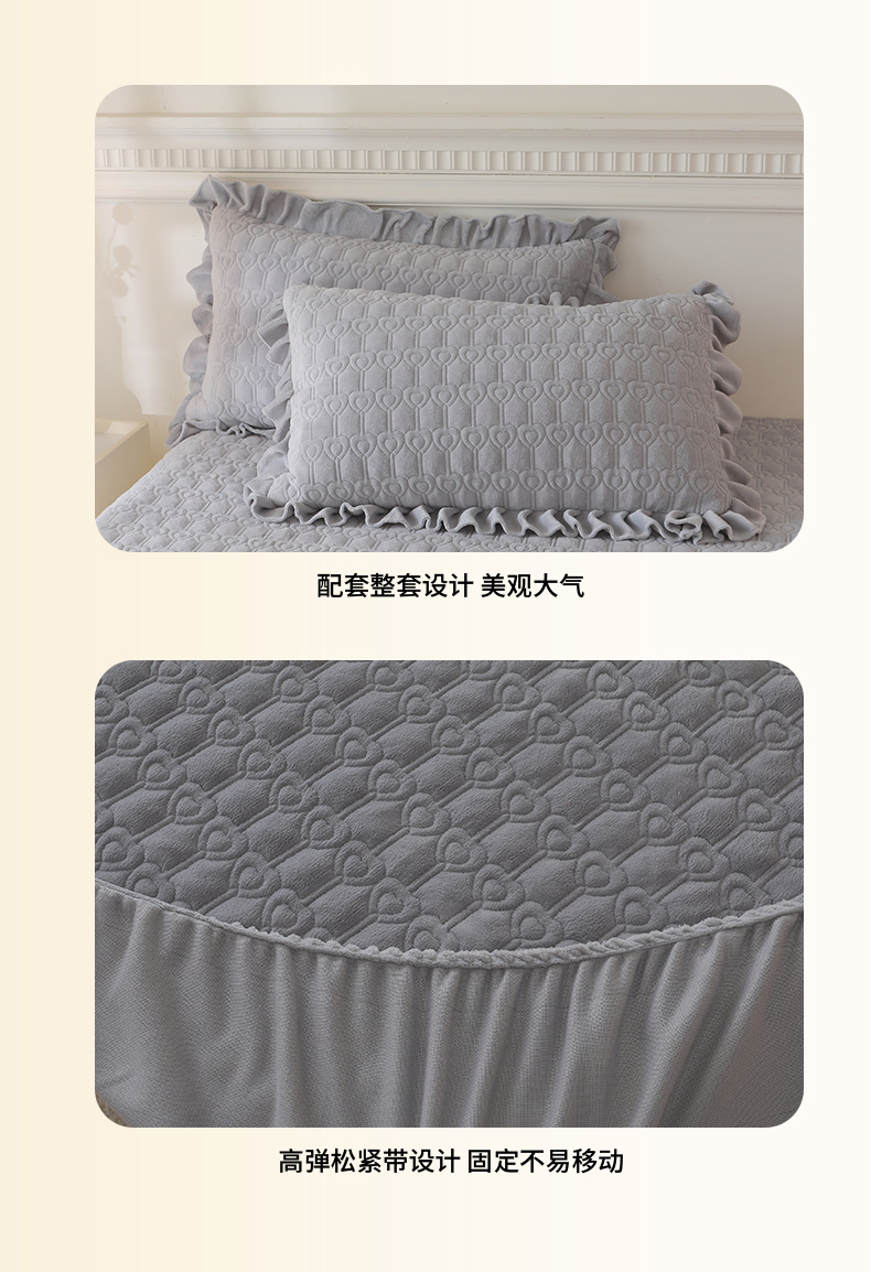 当前位置: 91家纺网 > 商品网购 > 床品套件 > 三件套 > 怡源梦 2025新款A类牛奶绒夹棉床笠三件套-甜心公主系列 灰色