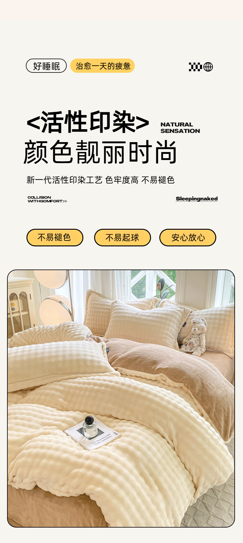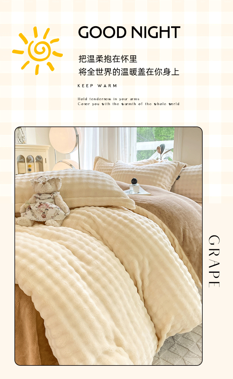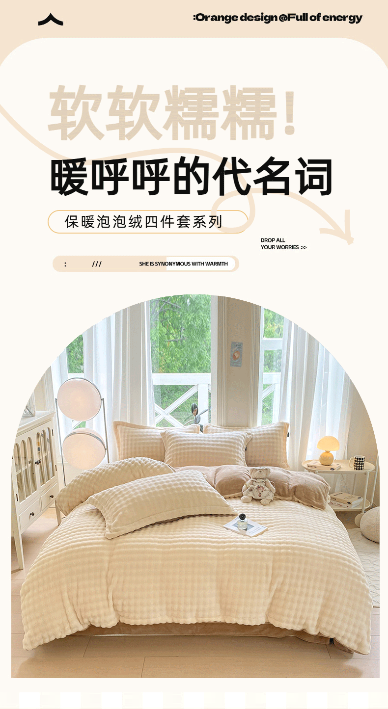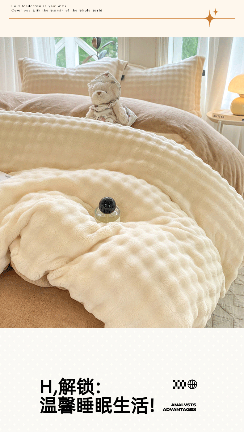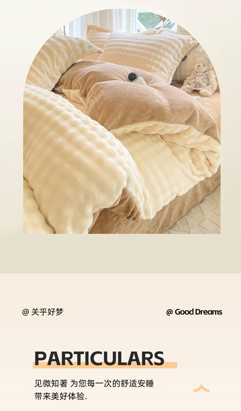 商品名称:悦织湾家纺 2025新款泡泡绒仿兔毛绒四件套牛奶绒纯色轻奢床上用品4件套货源足 泡泡绒-奶咖