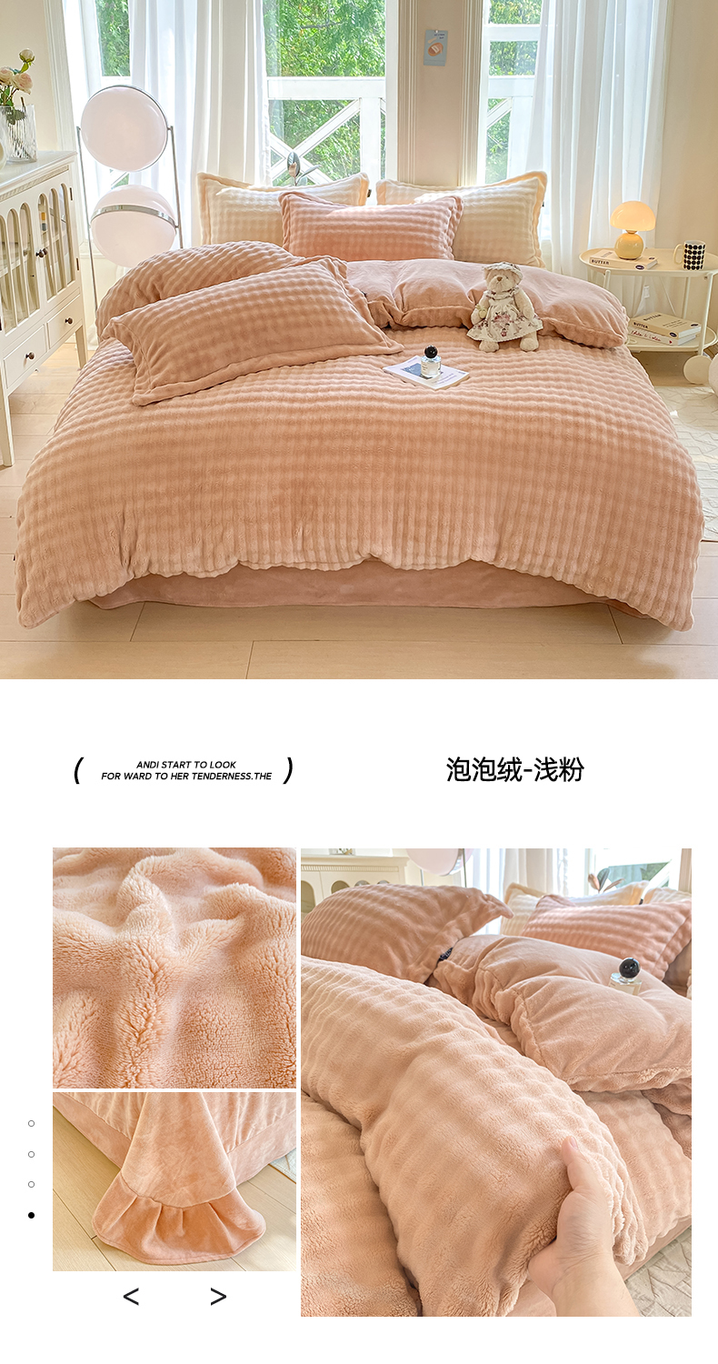 悦织湾家纺 2025新款泡泡绒仿兔毛绒四件套牛奶绒纯色轻奢床上用品4件套货源足 泡泡绒-奶咖
