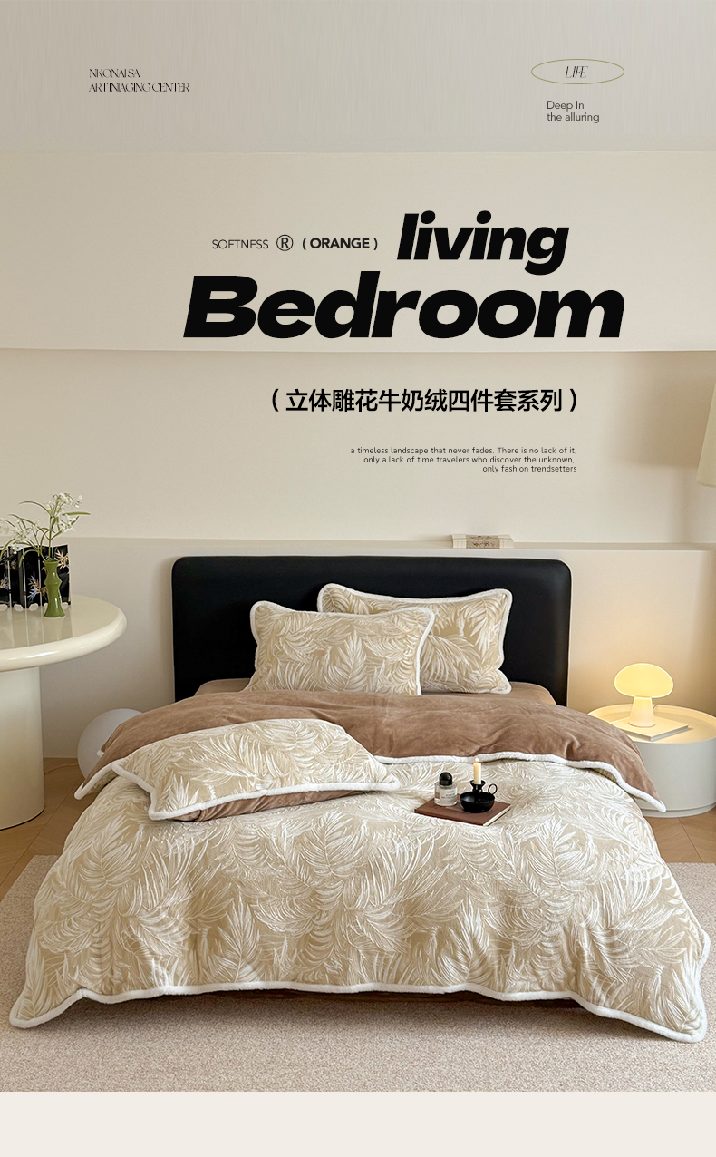 当前位置: 91家纺网 > 商品网购 > 床品套件 > 四件套 > 牛奶绒四件套 > 沐棉家居 2025新款高克重立体雕花牛奶绒保暖四件套 热带雨林