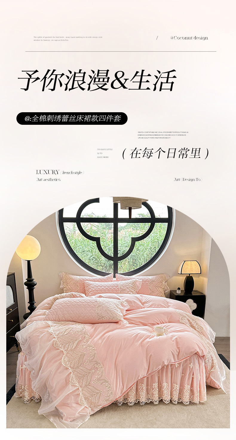 当前位置: 91家纺网 > 商品网购 > 床品套件 > 四件套 > 其它四件套 > 罗艺轩 2025新款全棉纯棉蕾丝刺绣琉璃床裙四件套(1.5m控价288起、1.8m控价293起、1.8m加大控价303起、1.8*2.2m控价298起、1.8*2.2m加大控价308起、2.0m控价3