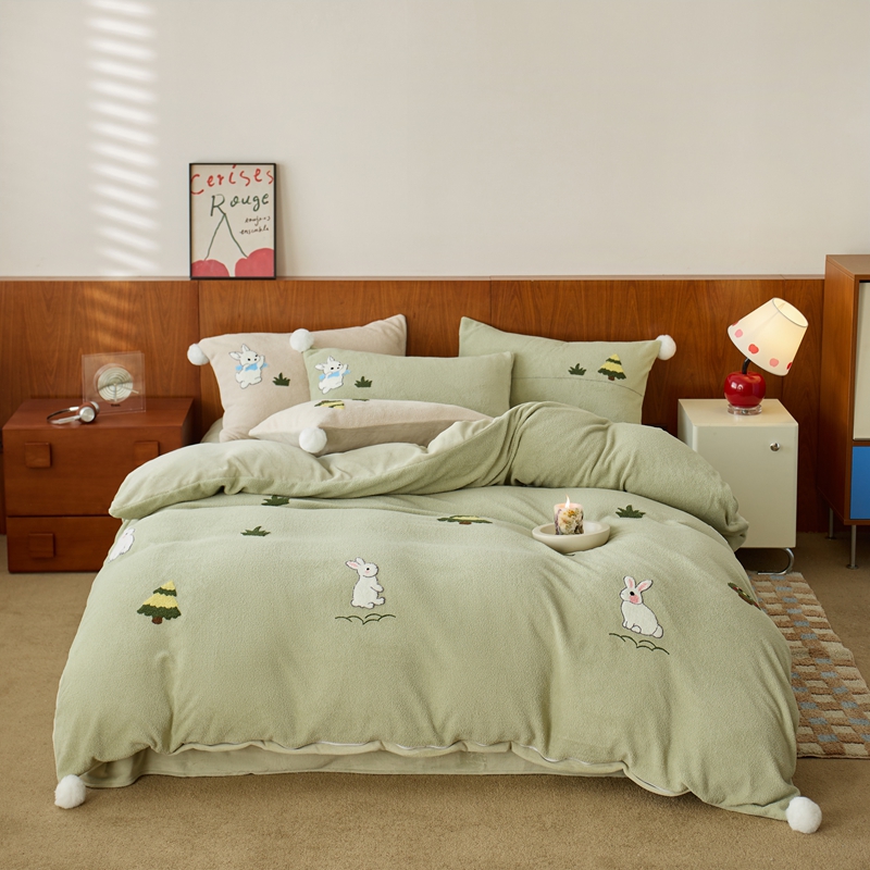 瑞雪家居 2025新款全消光毛巾绣艾尼绒系列四件套-艾尼兔 艾尼兔-湖水蓝