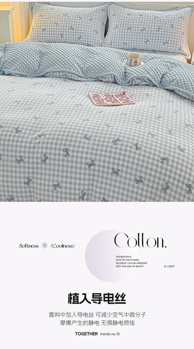 当前位置: 91家纺网 > 商品网购 > 床品套件 > 四件套 > 牛奶绒四件套 > 慕晨 2025新款高克重牛奶绒印花豆豆绒夹棉床盖三件被套四件套 千鸟格蝴蝶结