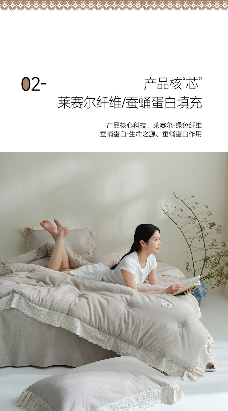(总)桂雅居 2025新款舒适麻棉麻数码印花蕾丝花边懒人被被子被芯,时雨灰,栗壳色,烟墨灰,麻本色,素锦咖,映雪咖,组合