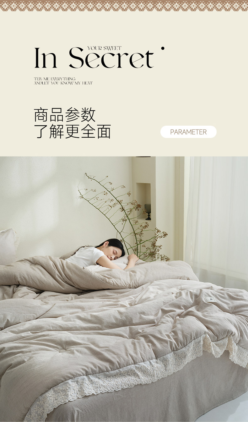(总)桂雅居 2025新款舒适麻棉麻蕾丝花边单床盖床盖单件,海棠红,栗壳色,麻本色,烟墨灰,组合图仅供展示不可下单,手拎袋包装,清婉花语-灰,秋意-红,素锦-咖