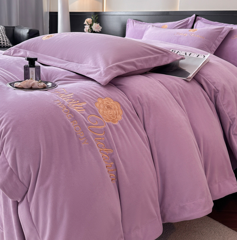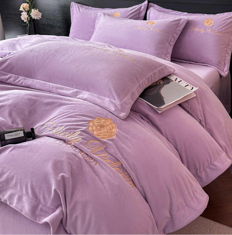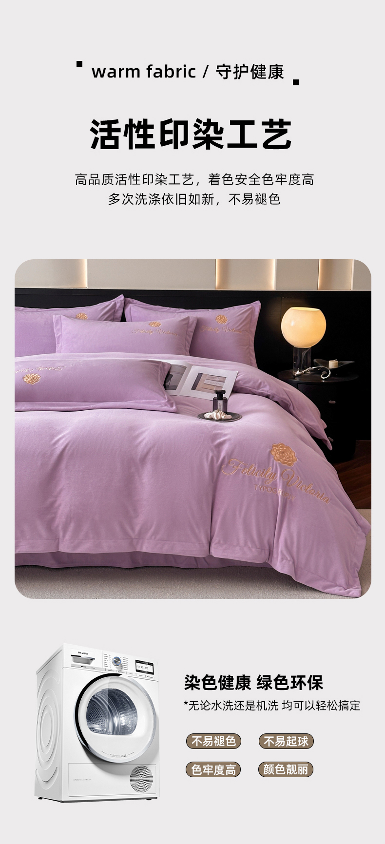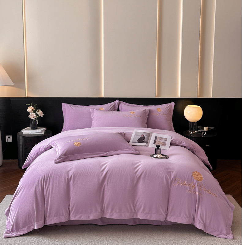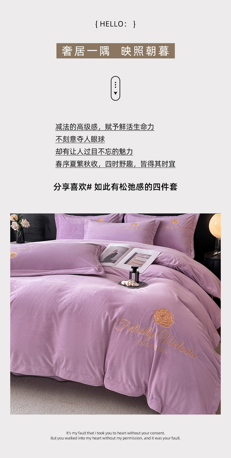 鸿织源2025新款-茶颜系列 宝宝绒宽边四件套 茶颜-丁香紫