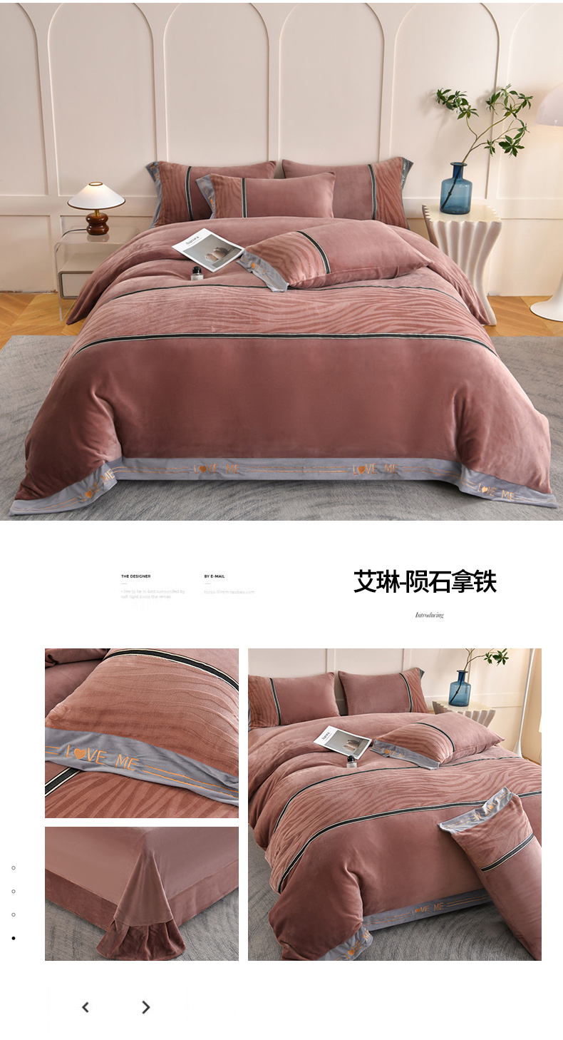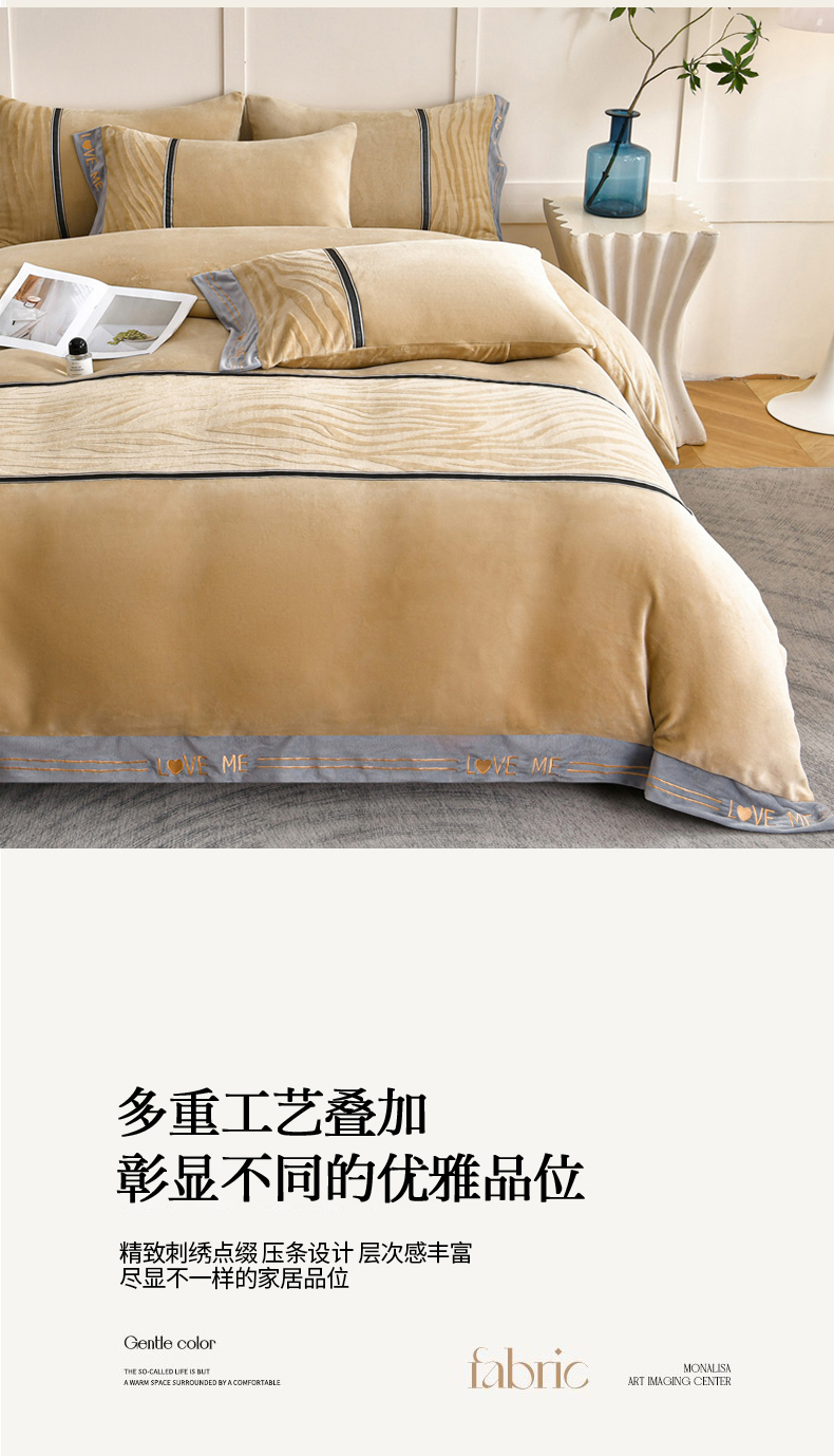 妮恒美家纺 2025新款刺绣婴儿绒工艺四件套-艾琳系列 艾琳-焦糖