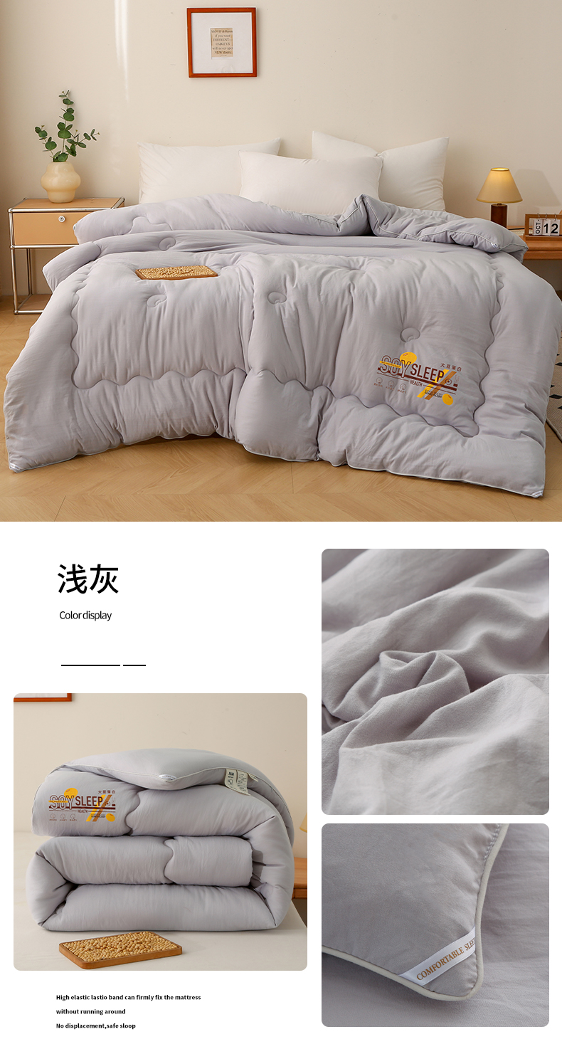 • 91家纺网 家纺一手货源 找家纺 薇玛仕 2025新款简约超柔水洗皱皱棉大豆被秋冬被被子被芯 浅灰