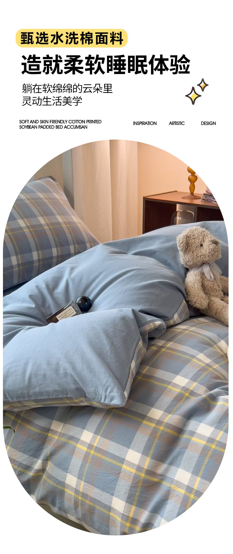 商品名称:梵克保罗 2025春夏新品无印风水洗棉学生六件套大礼包三件套枕套被套床单被芯床垫枕芯学生季 清雅中格