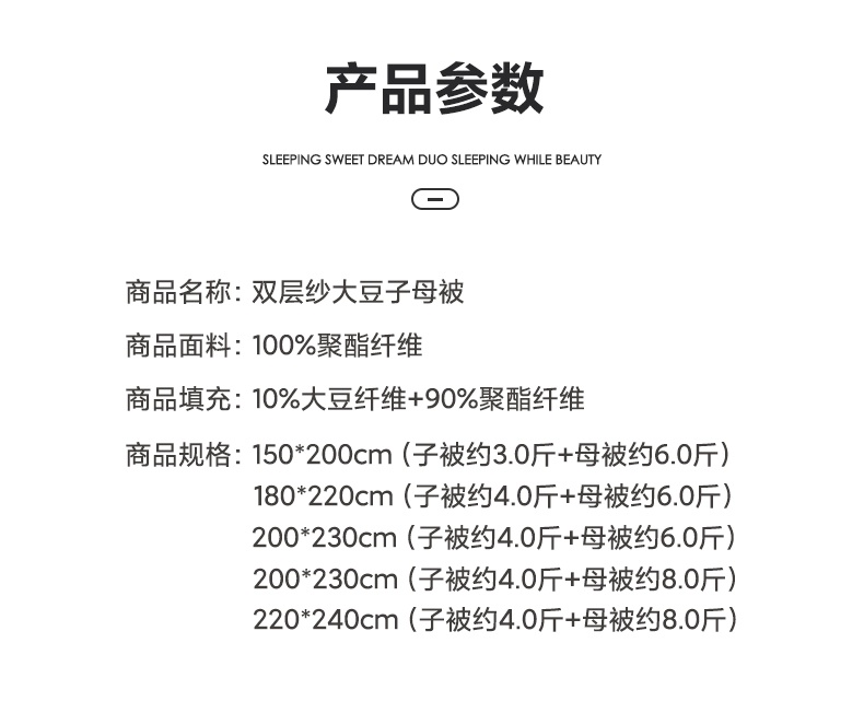 商品名称:蓝极人 2025新款涤纶双层纱大豆子母被 被子被芯冬被 象牙白