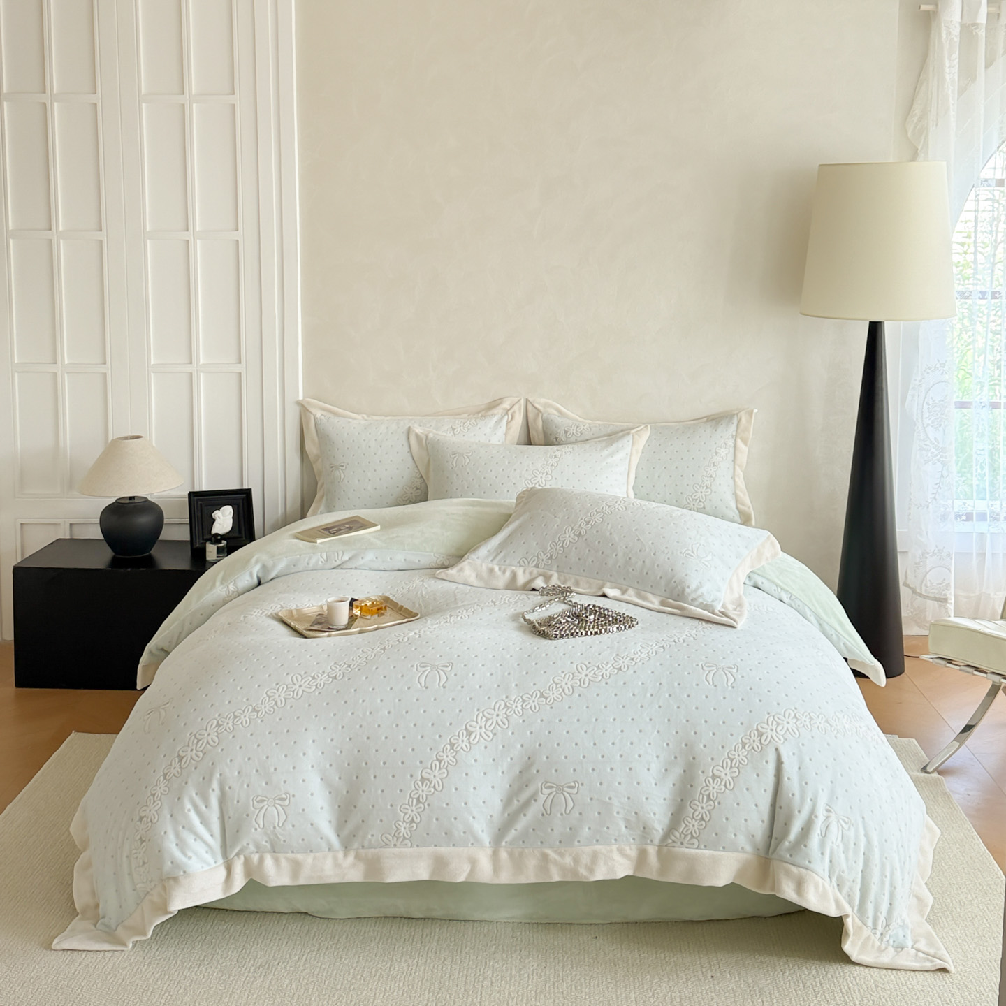 (总)若未家居 LOVEWE HOUSE 2025新款高克重牛奶绒四件套-镜中铃兰,镜中铃兰-米白,镜中铃兰-浅粉,镜中铃兰-浅蓝,镜中铃兰-浅绿,镜中铃兰-浅紫