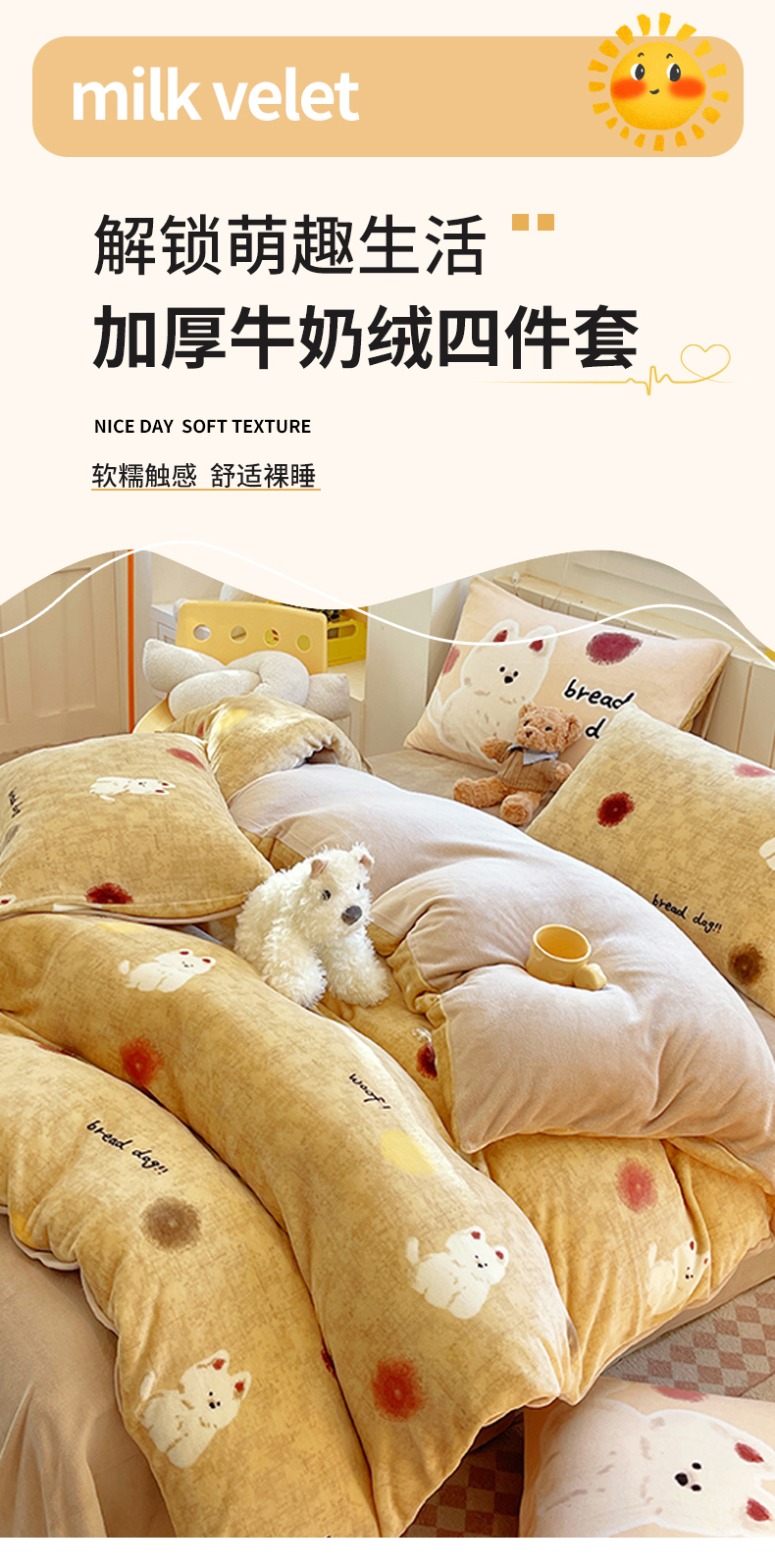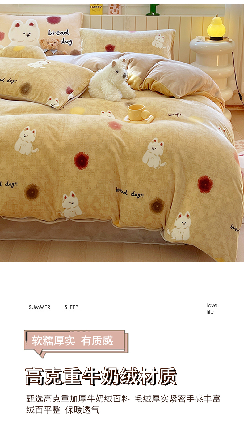 当前位置: 91家纺网 > 商品网购 > 床品套件 > 四件套 > 葡萄家 2025新款高克重印花牛奶绒四件套萌系卡通 泡芙狗