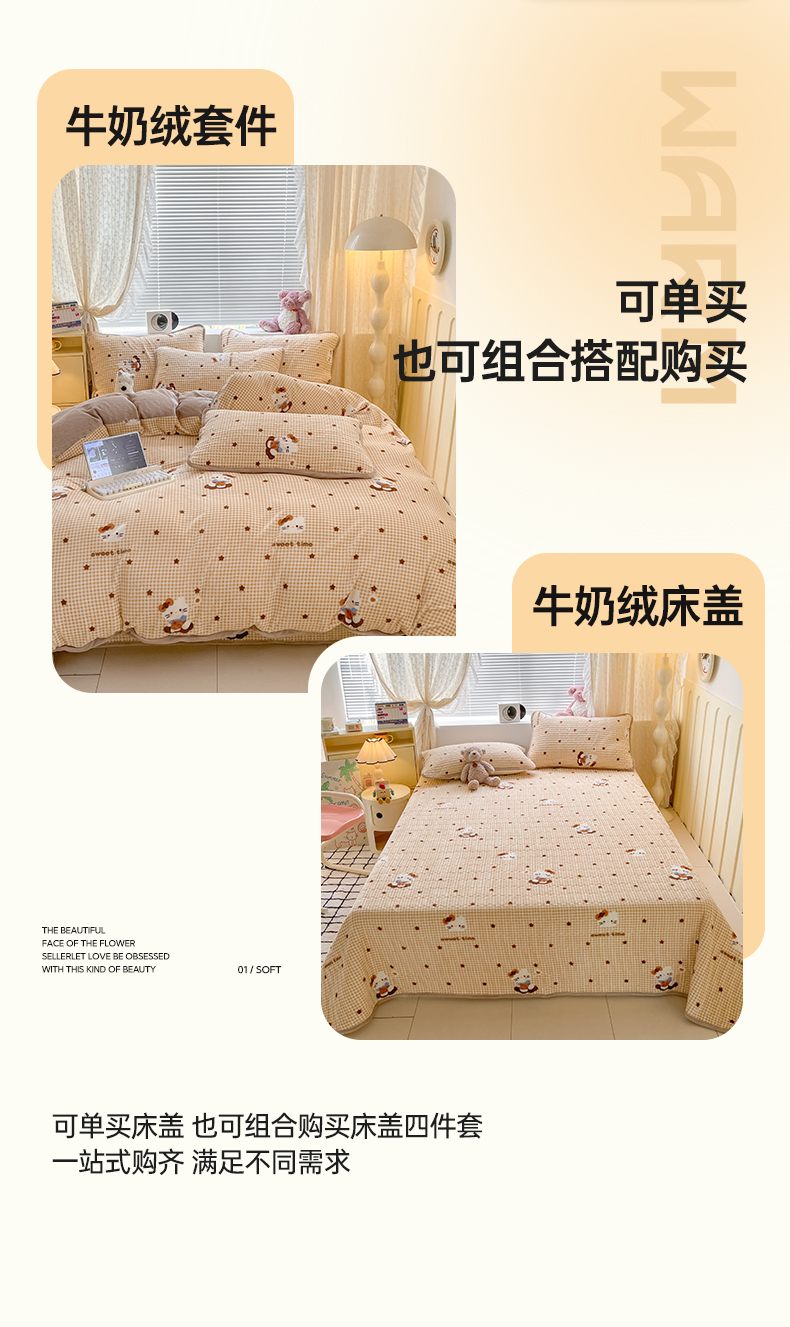 当前位置: 91家纺网 > 商品网购 > 床品套件 > 四件套 > 牛奶绒四件套 > 云玲时尚 2025新款高克重牛奶绒印花床盖四件套 漫漫花海
