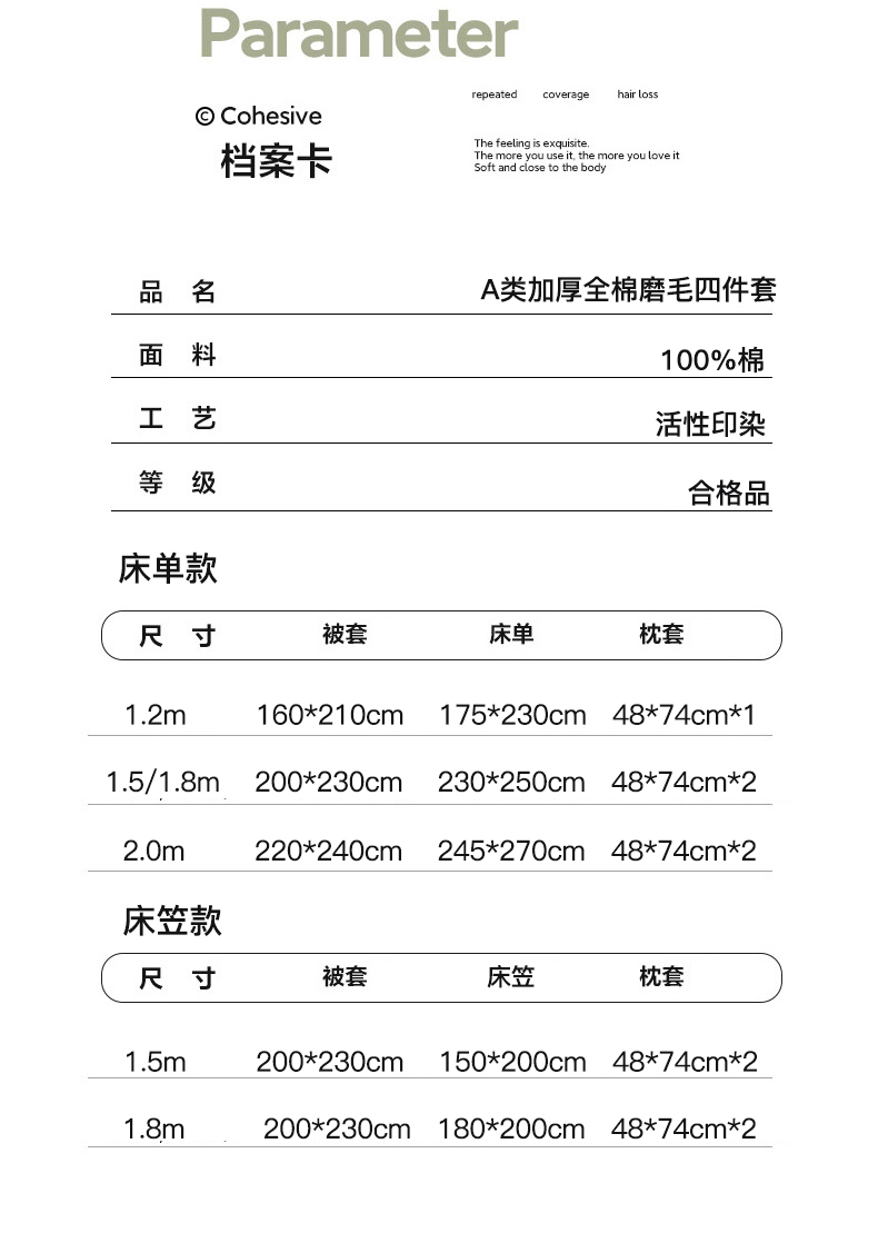 【床笠款】1.5四件套-被套200x230 | ¥150.00 |