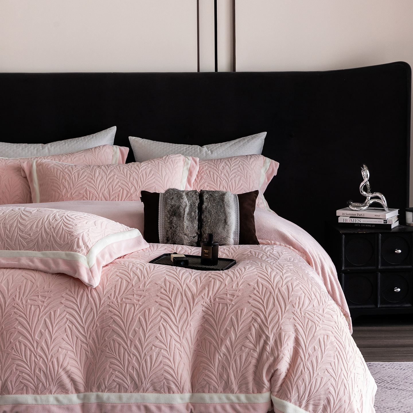 商品名称:(总)瑞雪家居 2025新款亲肤舒适牛奶绒四件套-榈叶系列