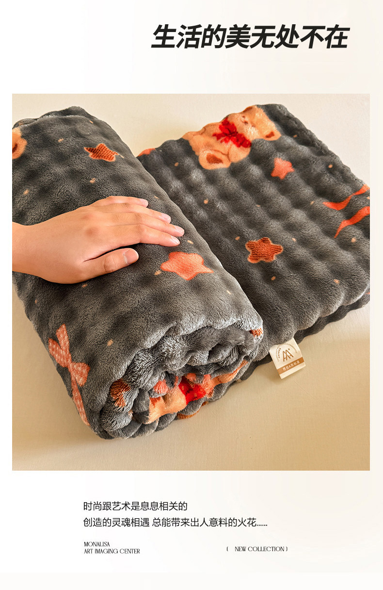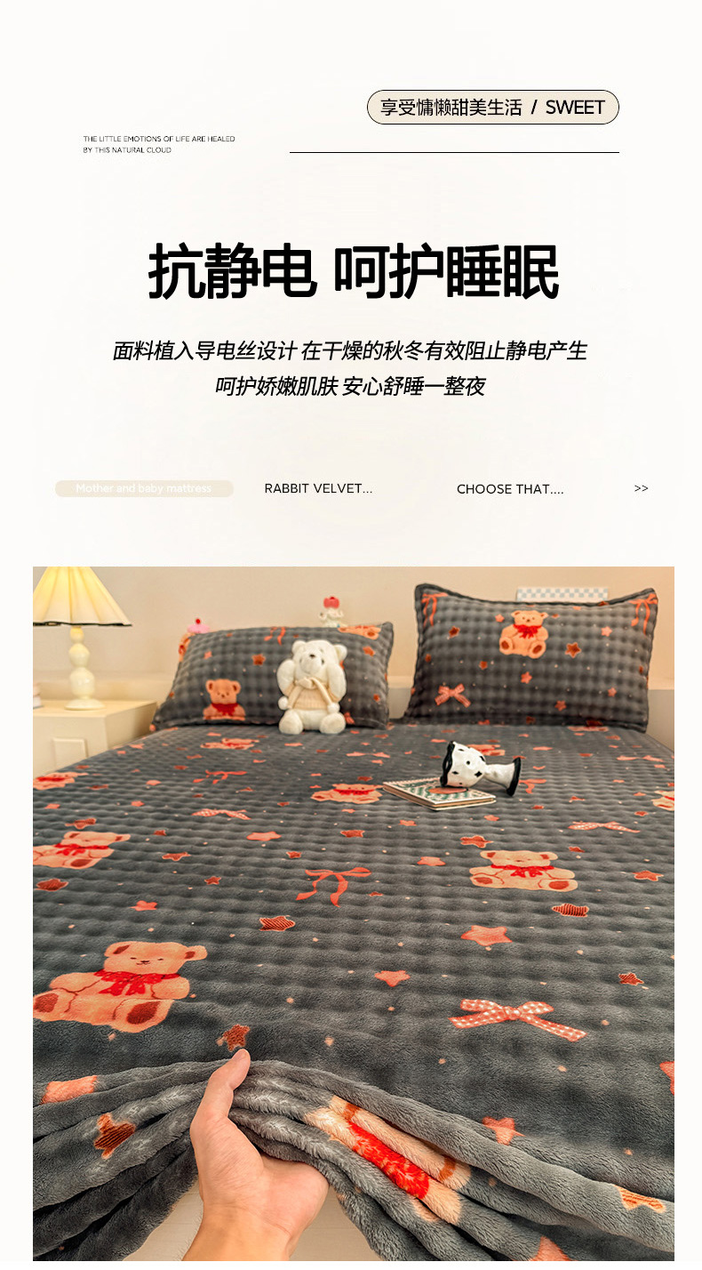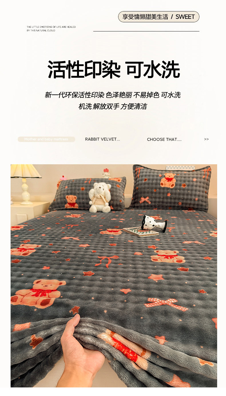 • 91家纺网 家纺一手货源 找家纺 绣女坊 2025新款A类高克重牛奶绒泡泡绒印花床单单件冬季保暖毛绒毯子绒床单三件套 星星小熊