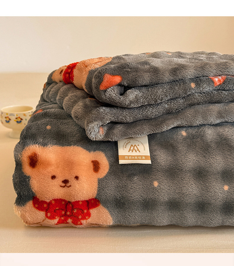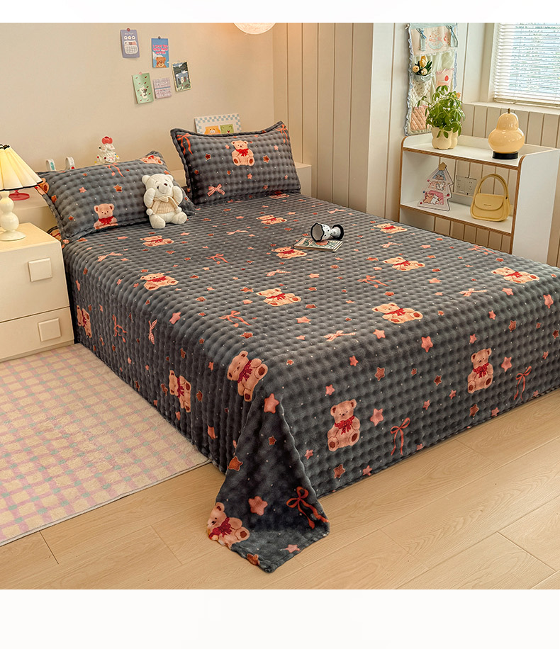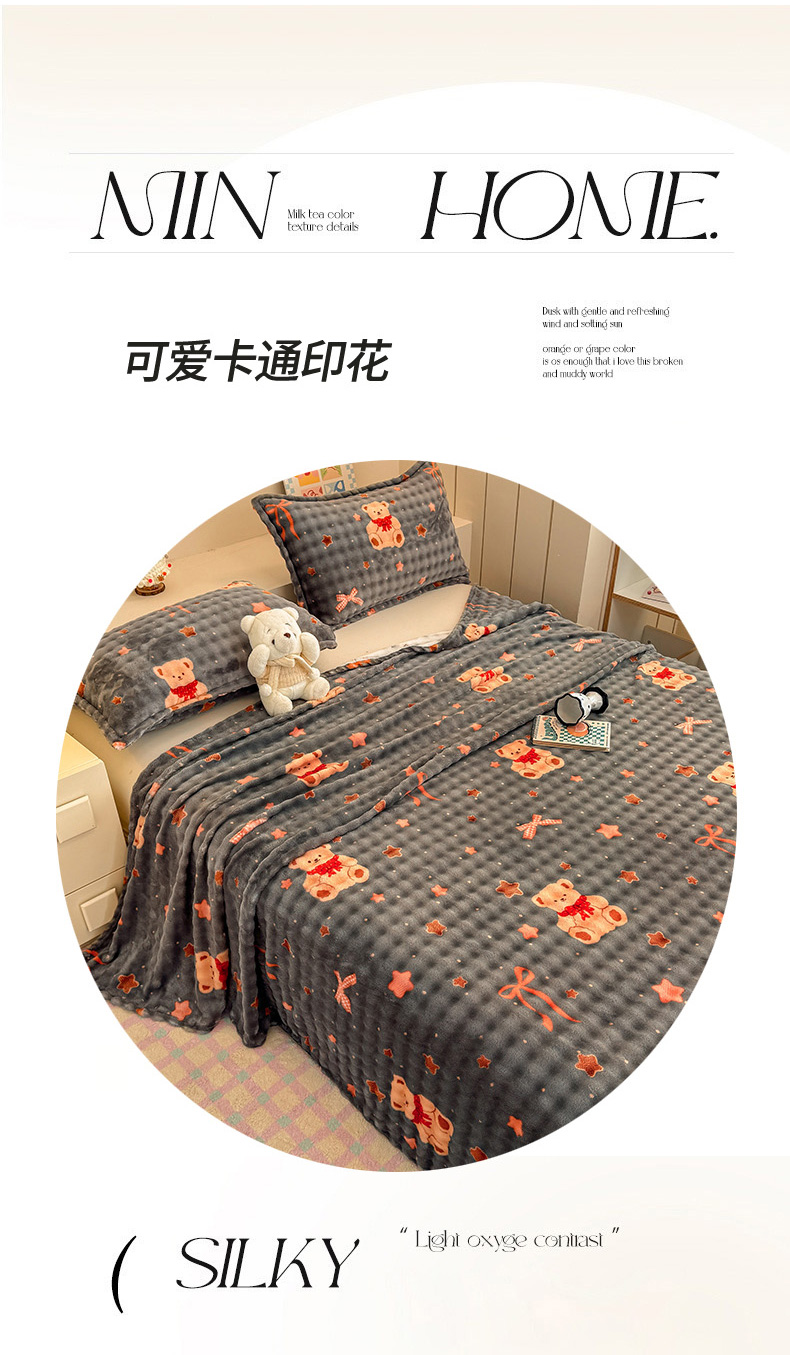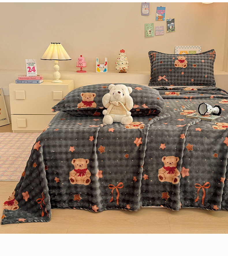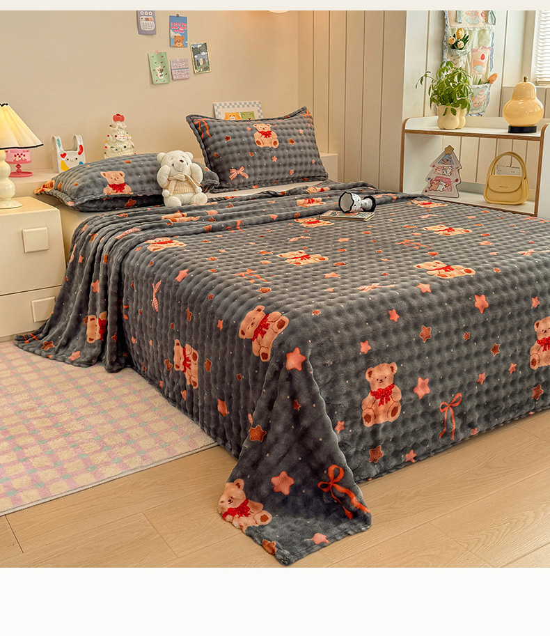 绣女坊 2025新款A类高克重牛奶绒泡泡绒印花床单单件冬季保暖毛绒毯子绒床单三件套 星星小熊
