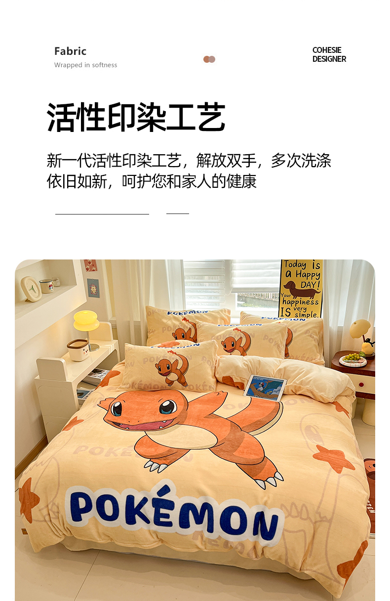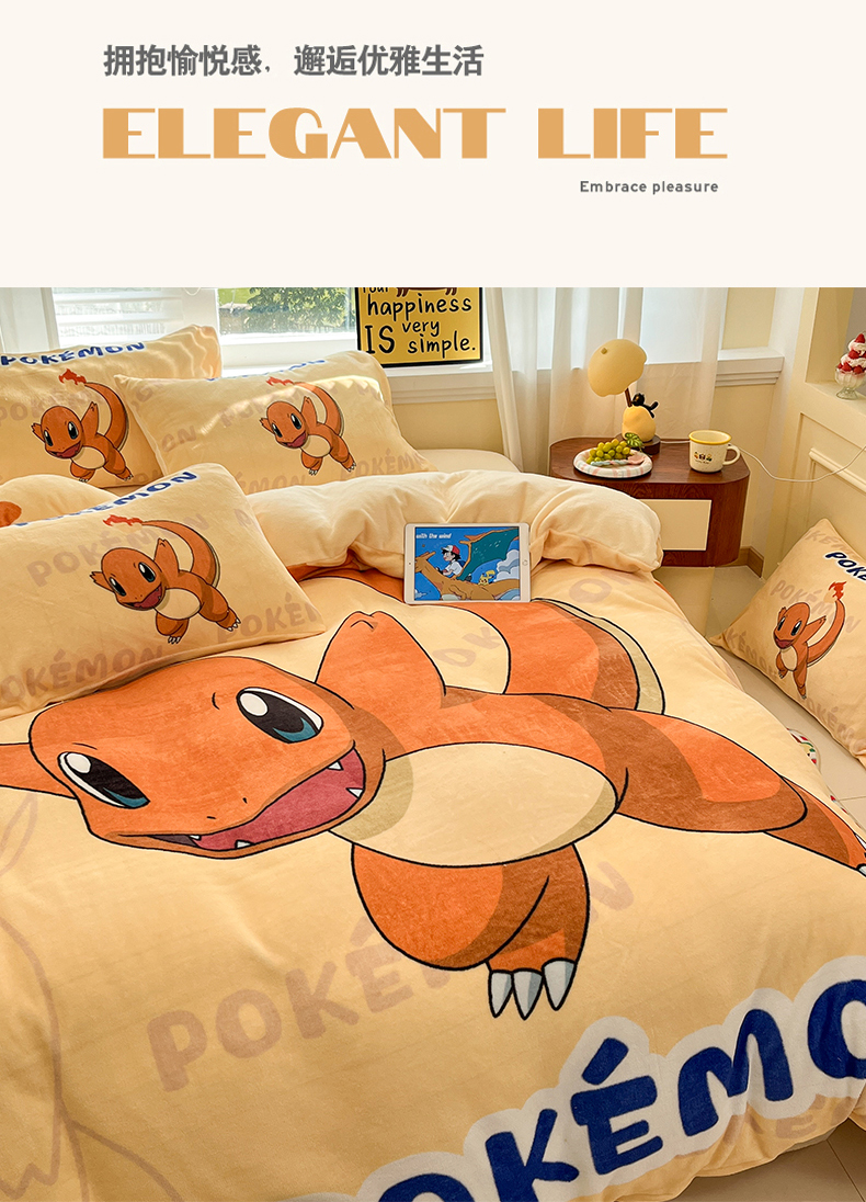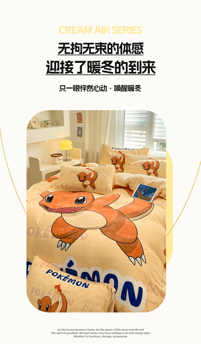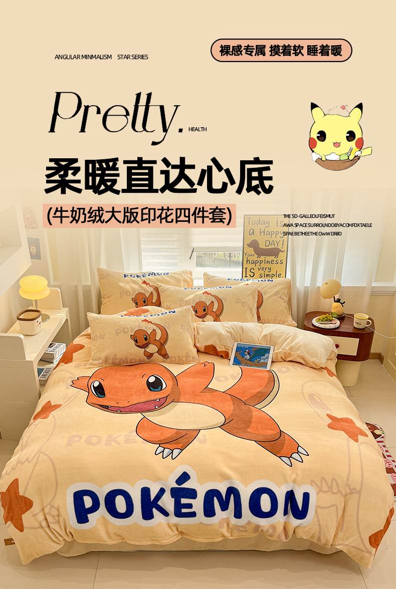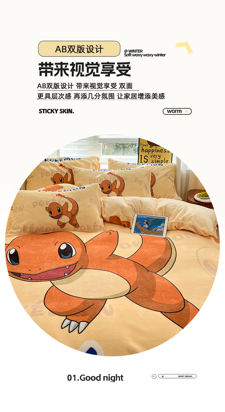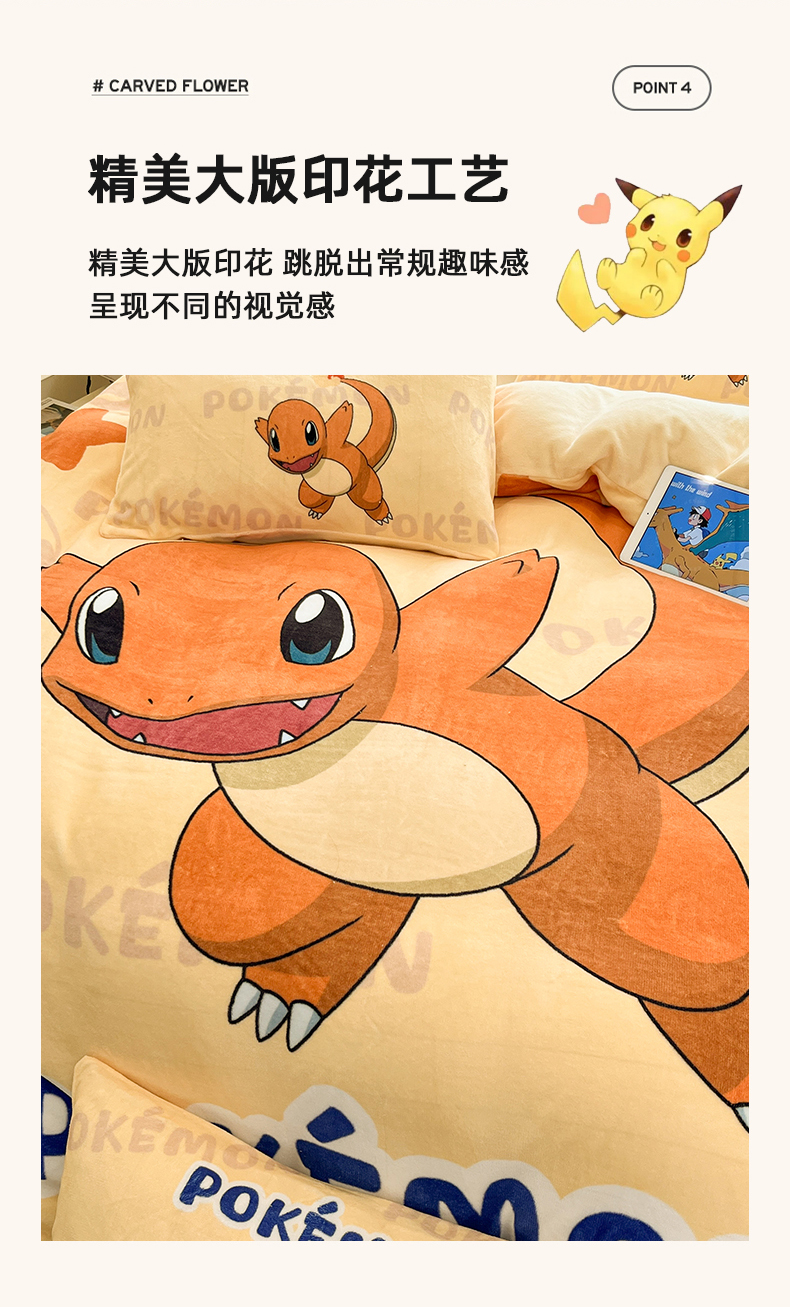 当前位置: 91家纺网 > 商品网购 > 床品套件 > 四件套 > 牛奶绒四件套 > 桃子家居 2025新款A类正版宝可梦授权皮卡丘大版卡通平网数码印花加厚高克重牛奶绒四件套 绒大版套件-喷火龙