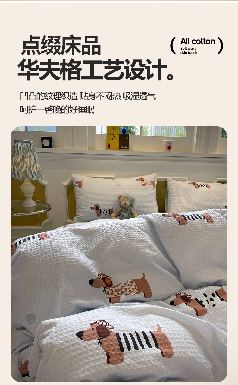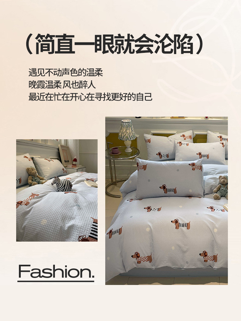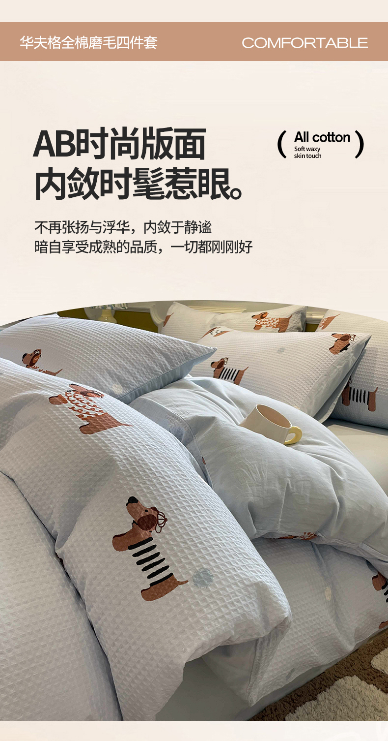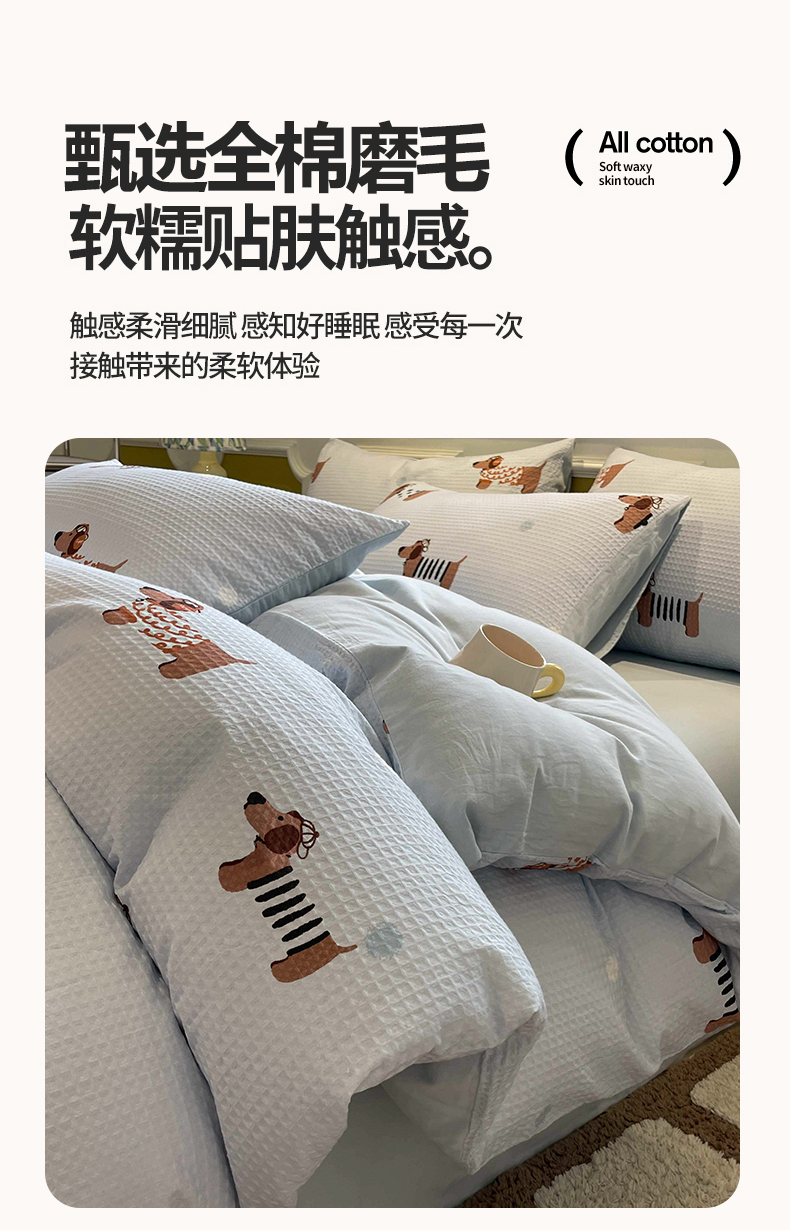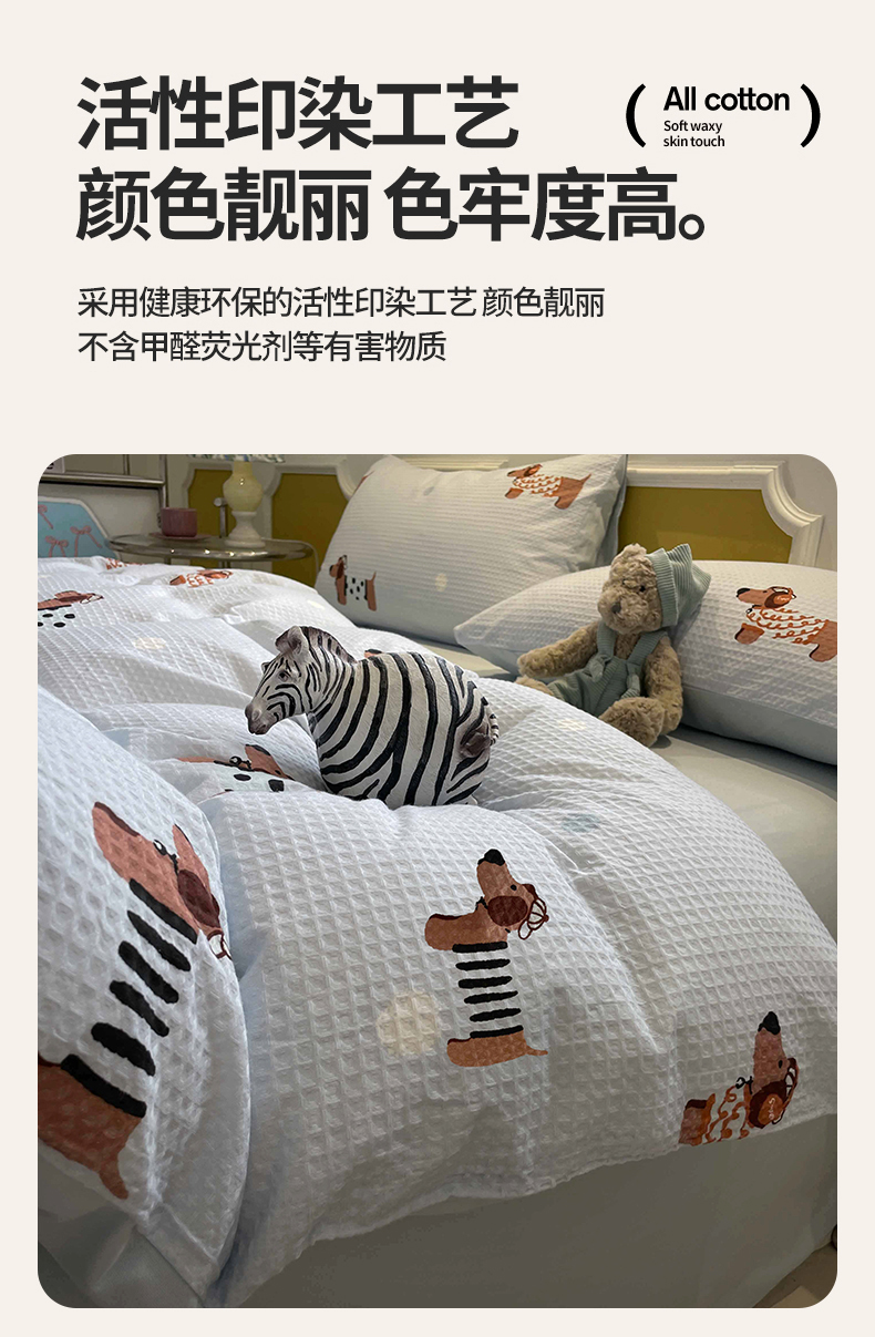 当前位置: 91家纺网 > 商品网购 > 床品套件 > 四件套 > 全棉普通四件套 > 小叮当家纺仓储工厂店 2025新款提供买家秀爆款花型不断货全棉纯棉A类华夫格印花磨毛四件套 瑞乐-兰