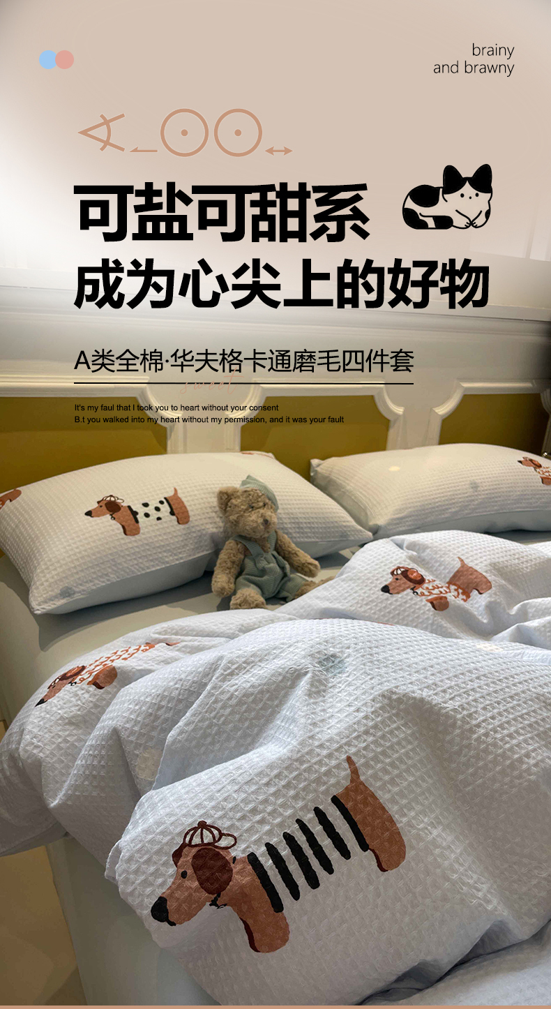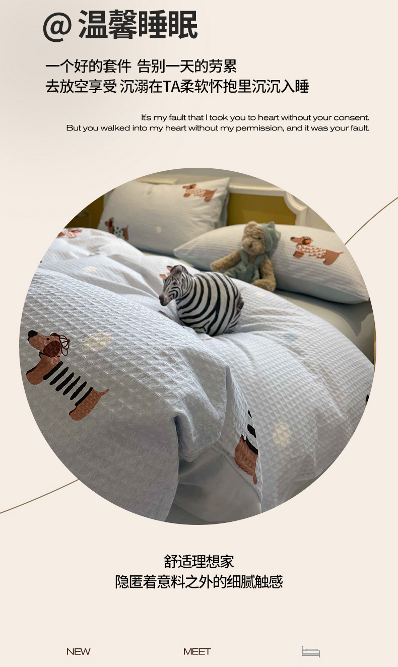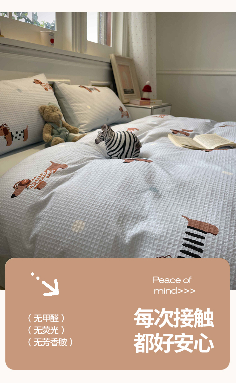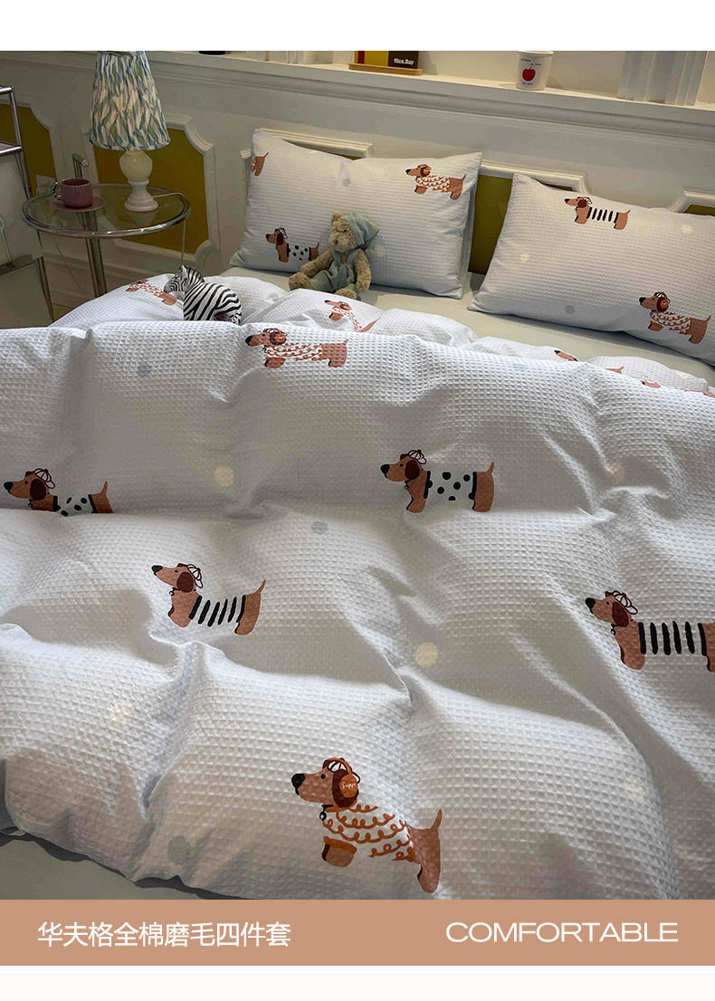 当前位置: 91家纺网 > 商品网购 > 床品套件 > 四件套 > 全棉普通四件套 > 小叮当家纺仓储工厂店 2025新款提供买家秀爆款花型不断货全棉纯棉A类华夫格印花磨毛四件套 瑞乐-兰