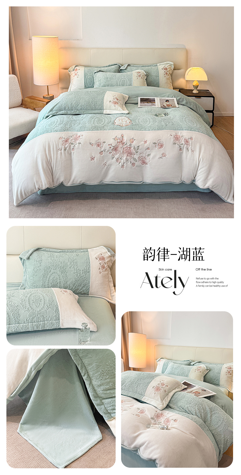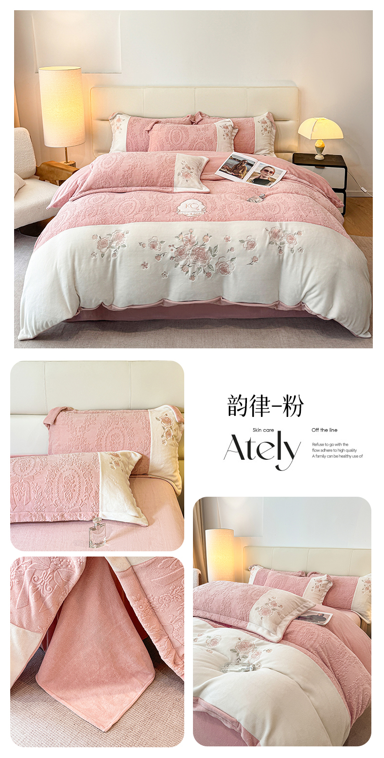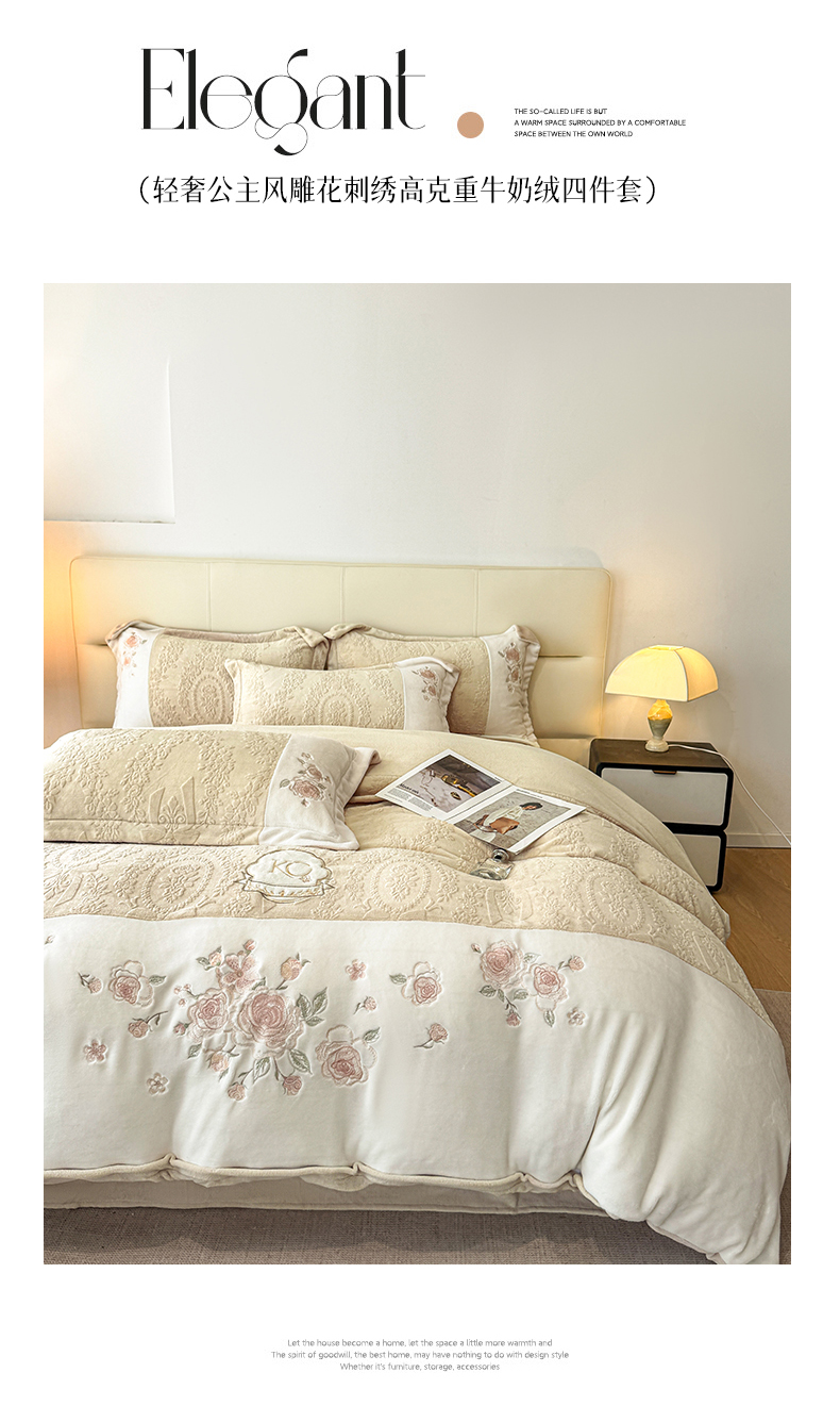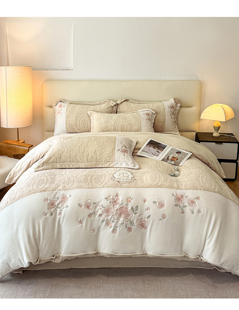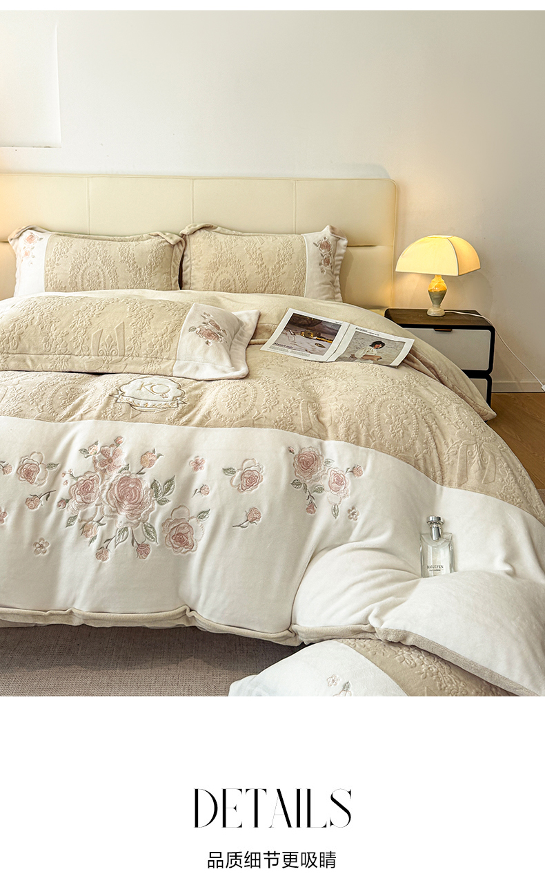 (总)金牛座家纺 2025新款婴儿绒刺绣提花四件套凯艺系列四件套,凯艺-豆沙粉,凯艺-灰,凯艺-精致蓝,凯艺-奶白,凯艺-香槟