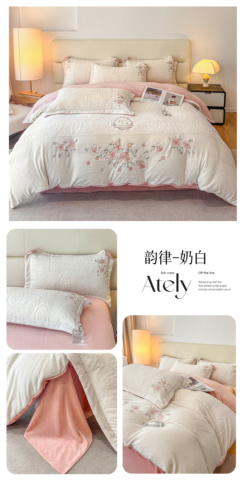 (总)金牛座家纺 2025新款加厚牛奶绒轻奢刺绣四件套-若兰,若兰-杏色,若兰-奶白,若兰-嫩粉,若兰-浅灰,若兰-浅紫
