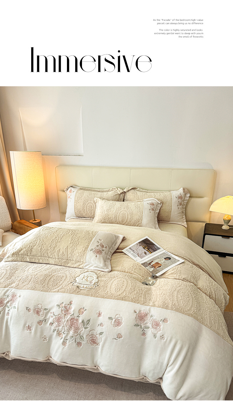 (总)金牛座家纺 2025新款立体雕花加厚牛奶绒刺绣拼接四件套【控价 售价请勿低于158】,花海,春见,蝶林,玫语