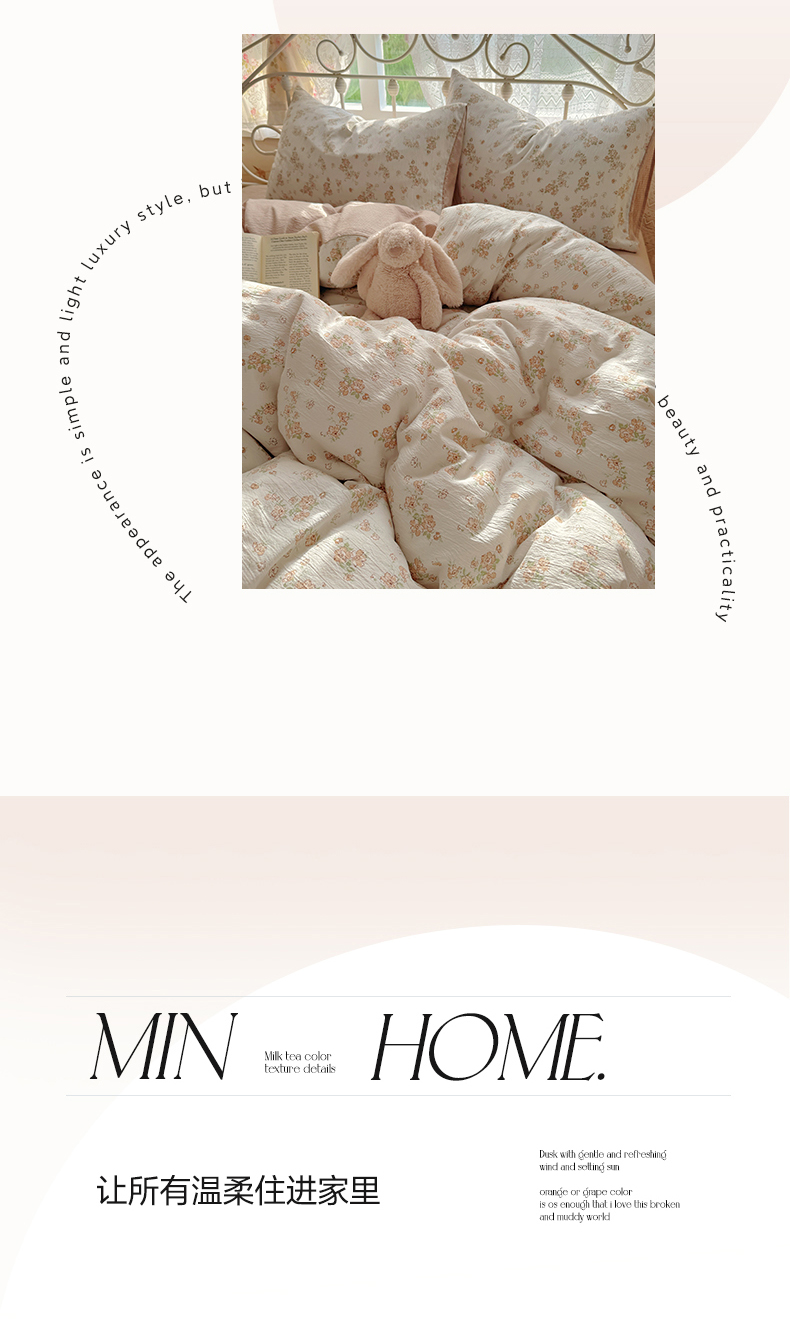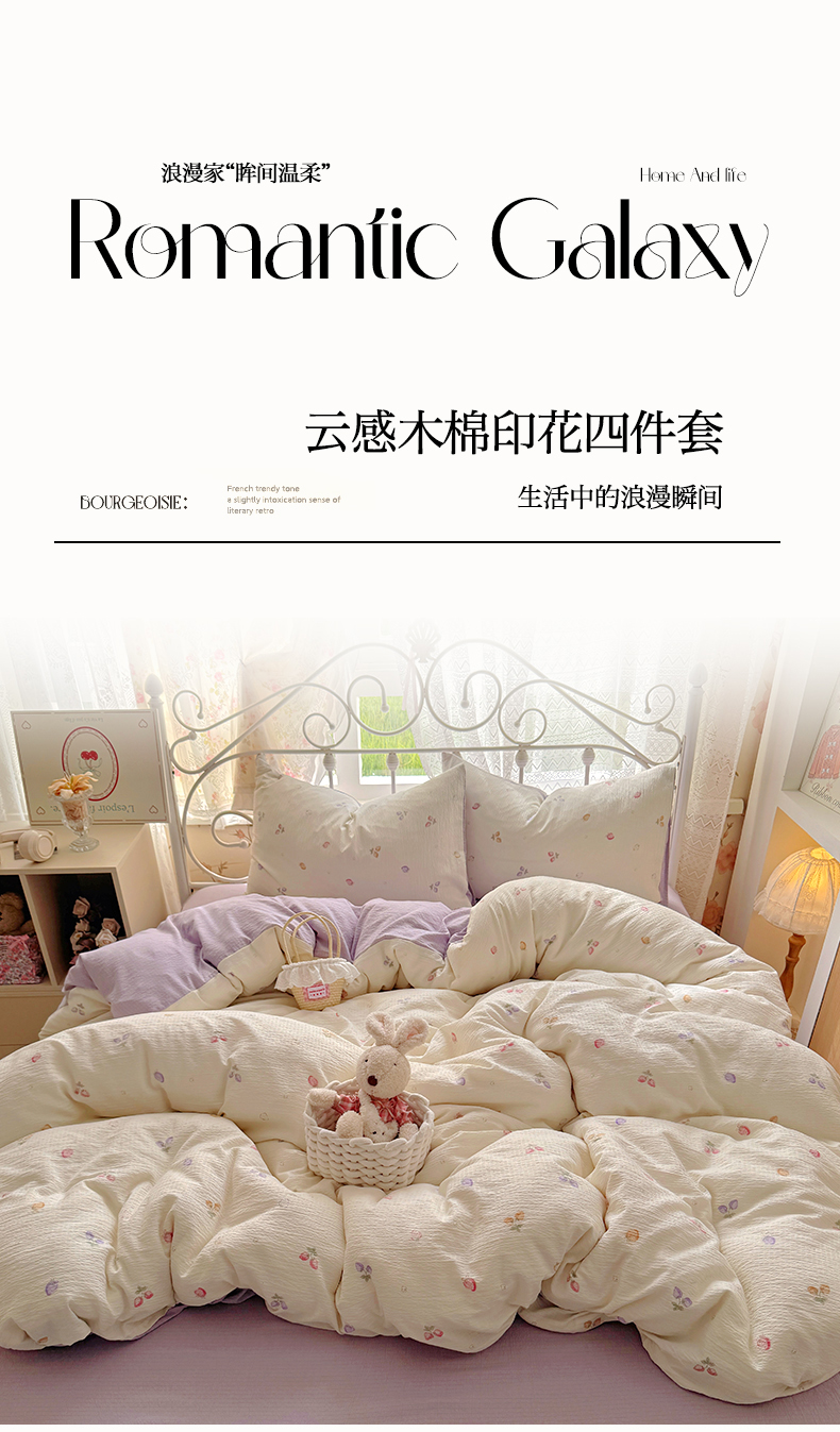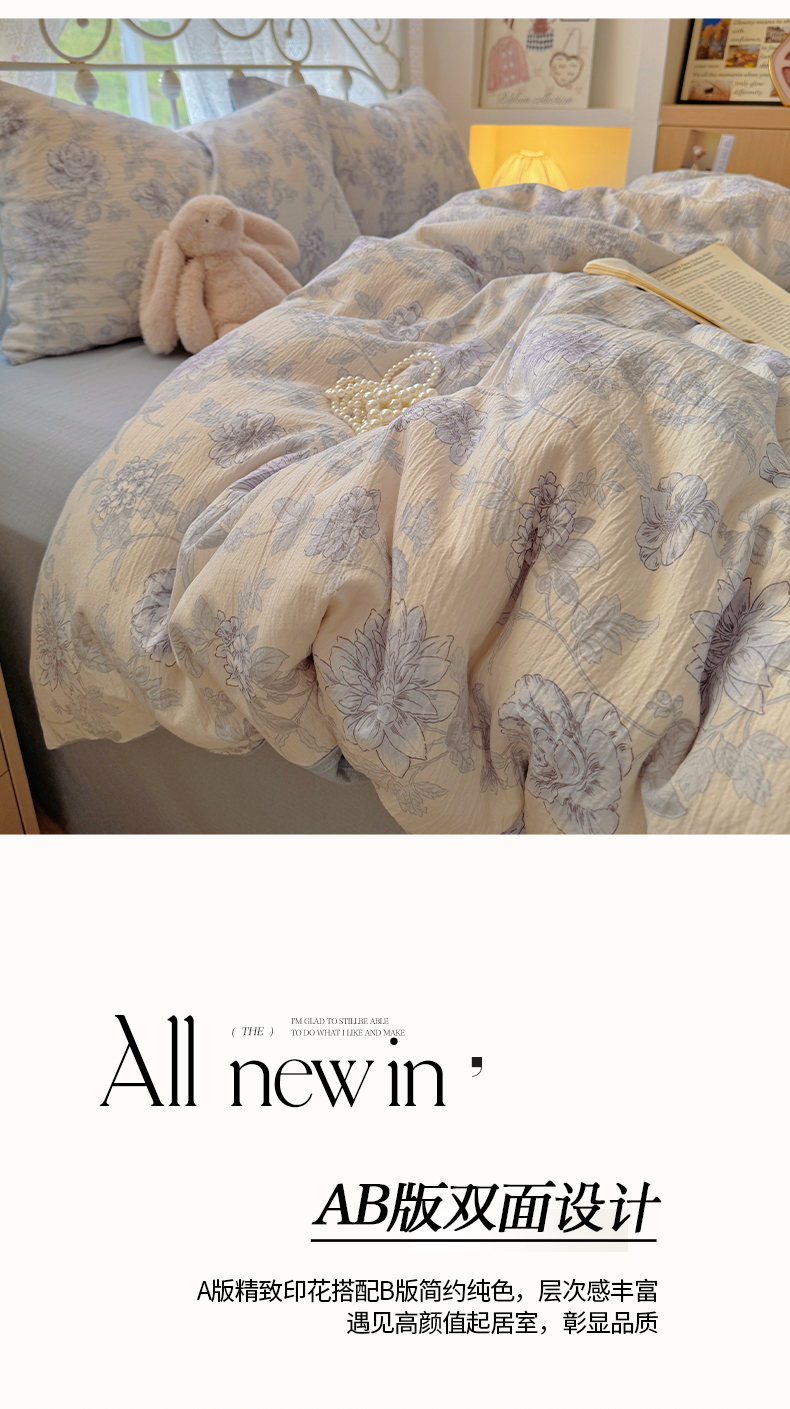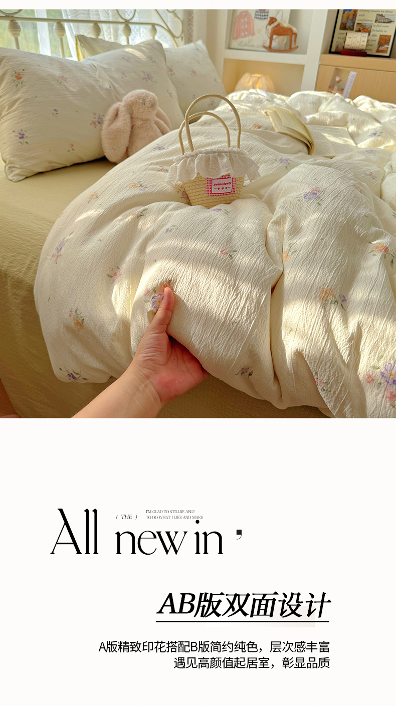 (总)阿曼达 2025爆款云感木m透气柔软印花可爱卡通软糯皱皱亲肤四件套,氛途-米玉,果果-米黄,小草莓-米玉,兔小姐-卡,木槿-米白,萌宠乐园-绿,蔓香阁-卡,花物-米玉,花容月貌-兰,花梦-米卡,花柯-米色,花海-浅绿,花物-兰,百花集-紫