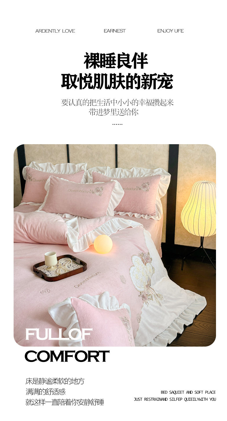 七七家纺 2025新款刺绣款牛奶绒四件套-织梦系列 织梦-粉