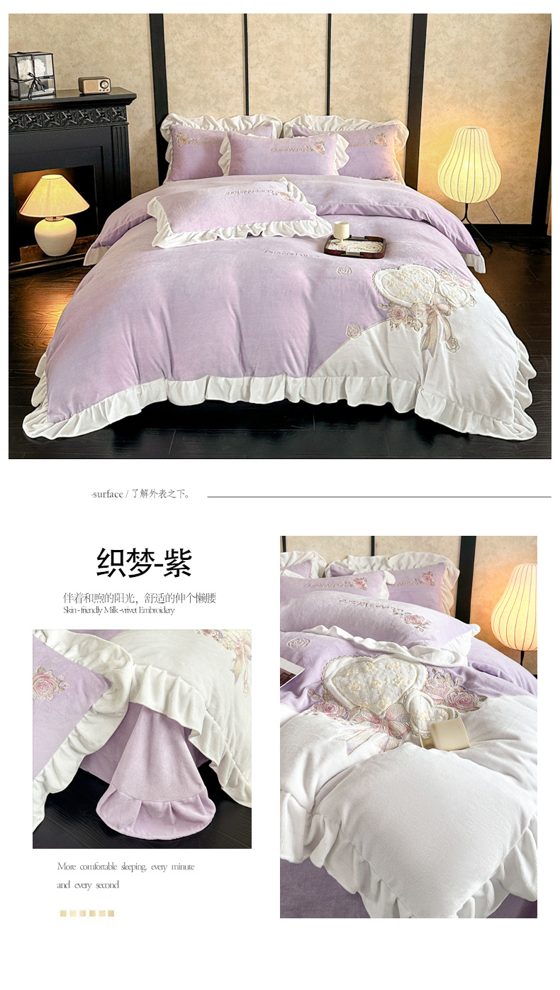 (总)七七家纺 2025新款刺绣款牛奶绒四件套-织梦系列,织梦-粉,织梦-豆沙,织梦-黄,织梦-水绿,织梦-天蓝,织梦-紫