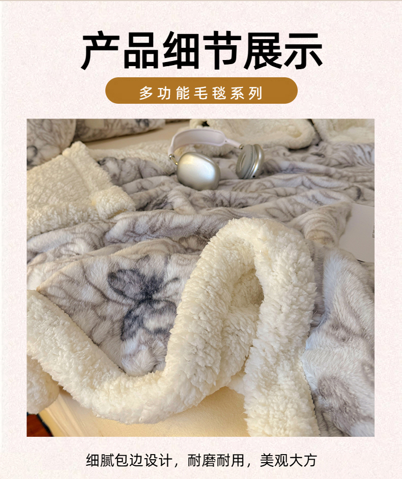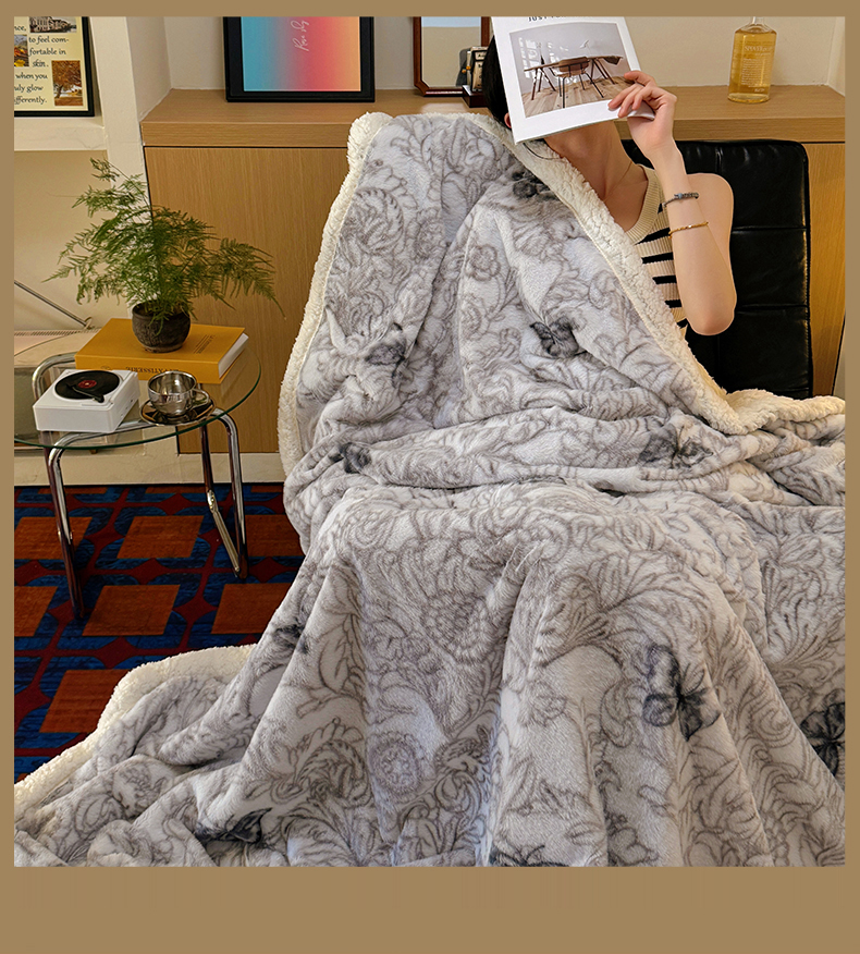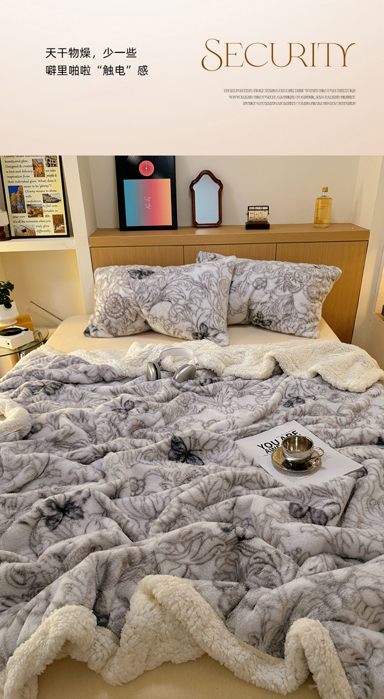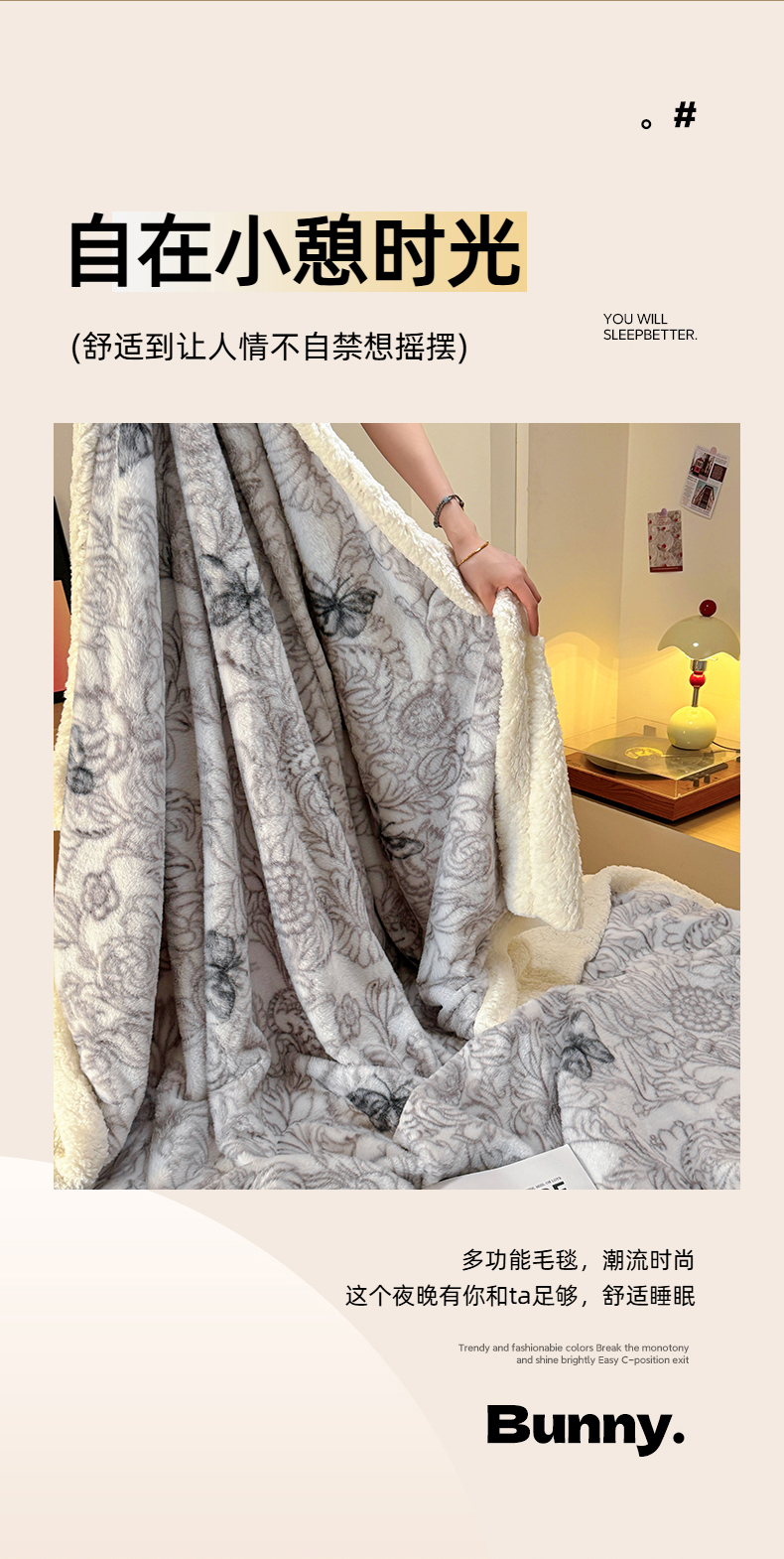 商品名称:春光里 2025新款兔毛羊羔绒收包边毛毯 蝶恋