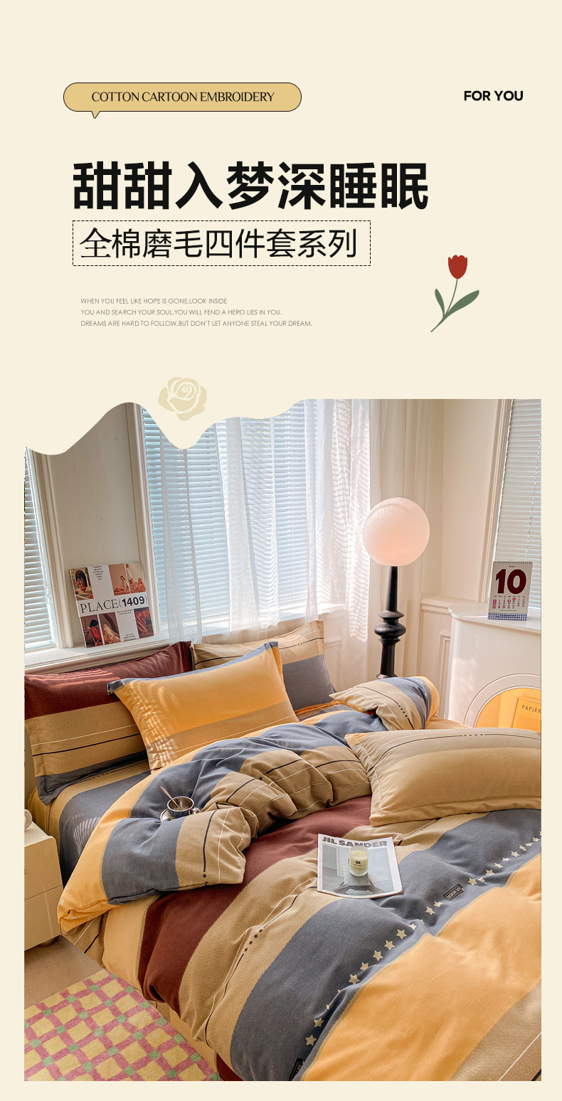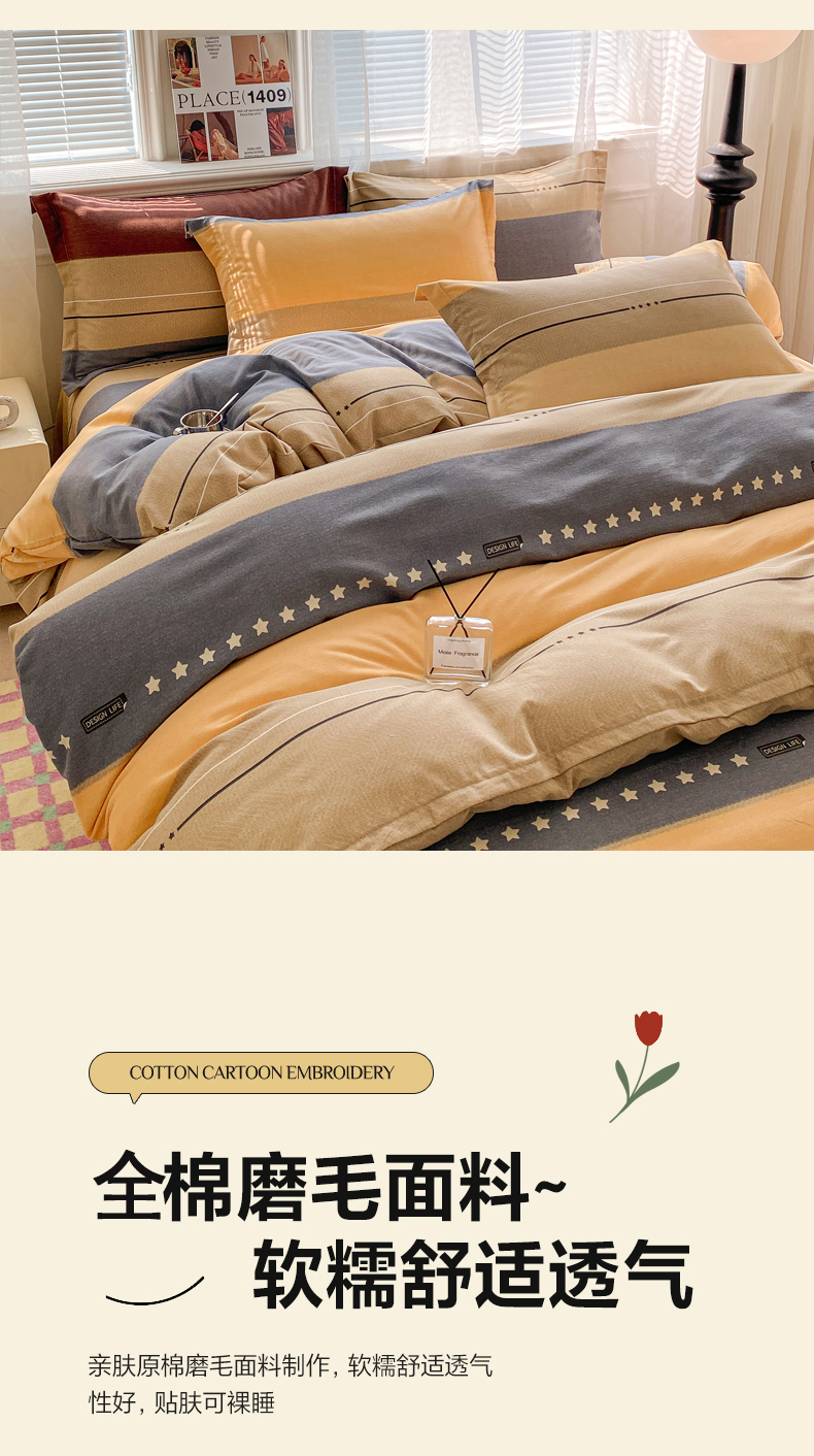 当前位置: 91家纺网 > 商品网购 > 床品套件 > 四件套 > 全棉普通四件套 > 小叮当家纺仓储工厂店 2025新款(买家秀 不断货)A类全棉纯棉磨毛四件套 条纹星星-黄
