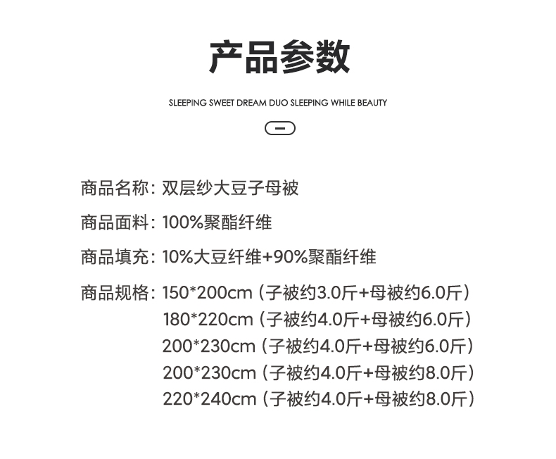 商品名称:小叮当家纺仓储工厂店 2025新款双层纱大豆子母被被子被芯 良品-浅银灰