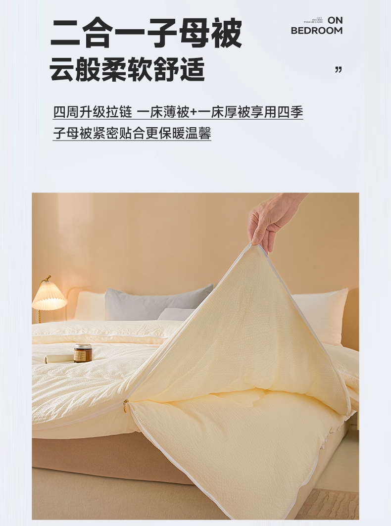 小叮当家纺仓储工厂店 2025新款双层纱大豆子母被被子被芯 良品-浅银灰