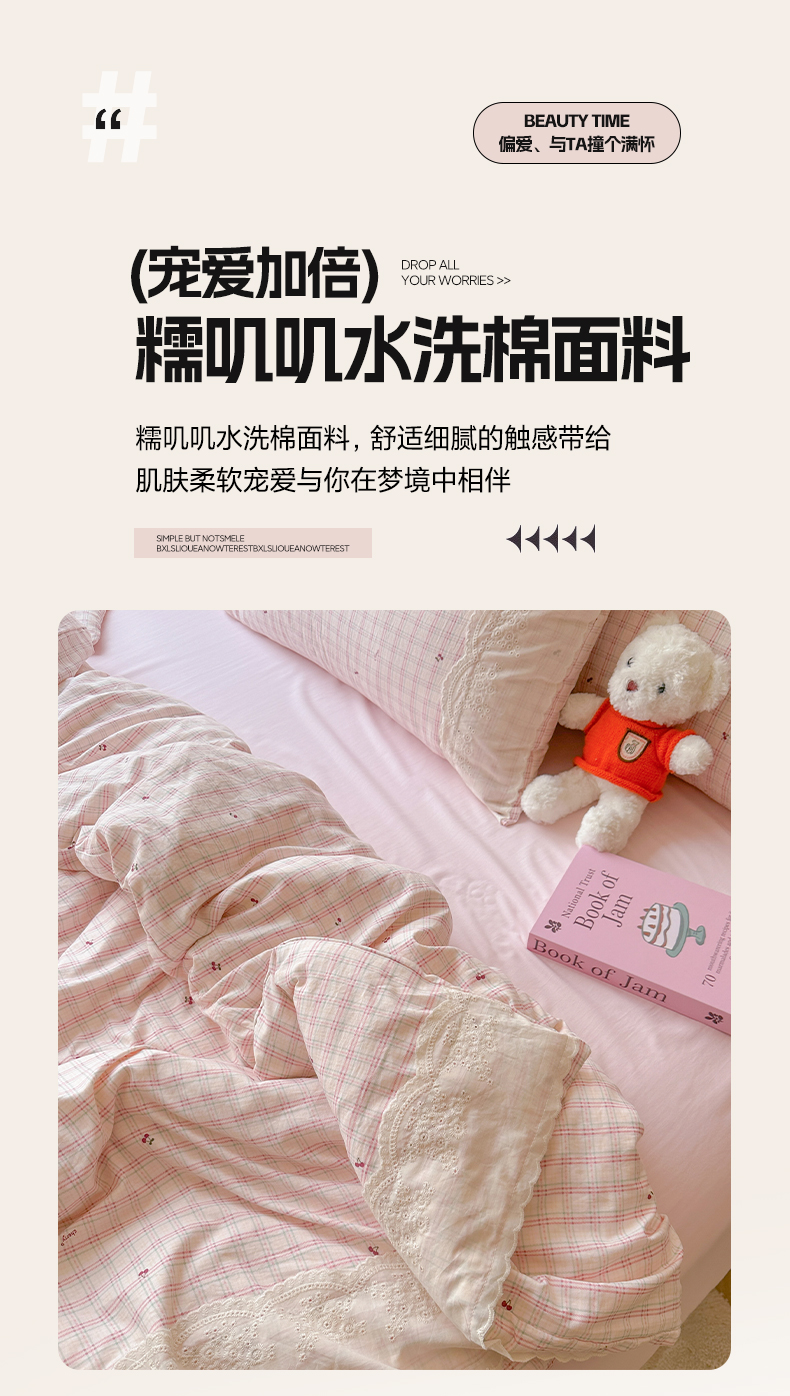 当前位置: 91家纺网 > 商品网购 > 床品套件 > 四件套 > 澜妃 2025新款糯叽叽水洗棉全棉蕾丝花边-艾意系列 艾意-春江雾