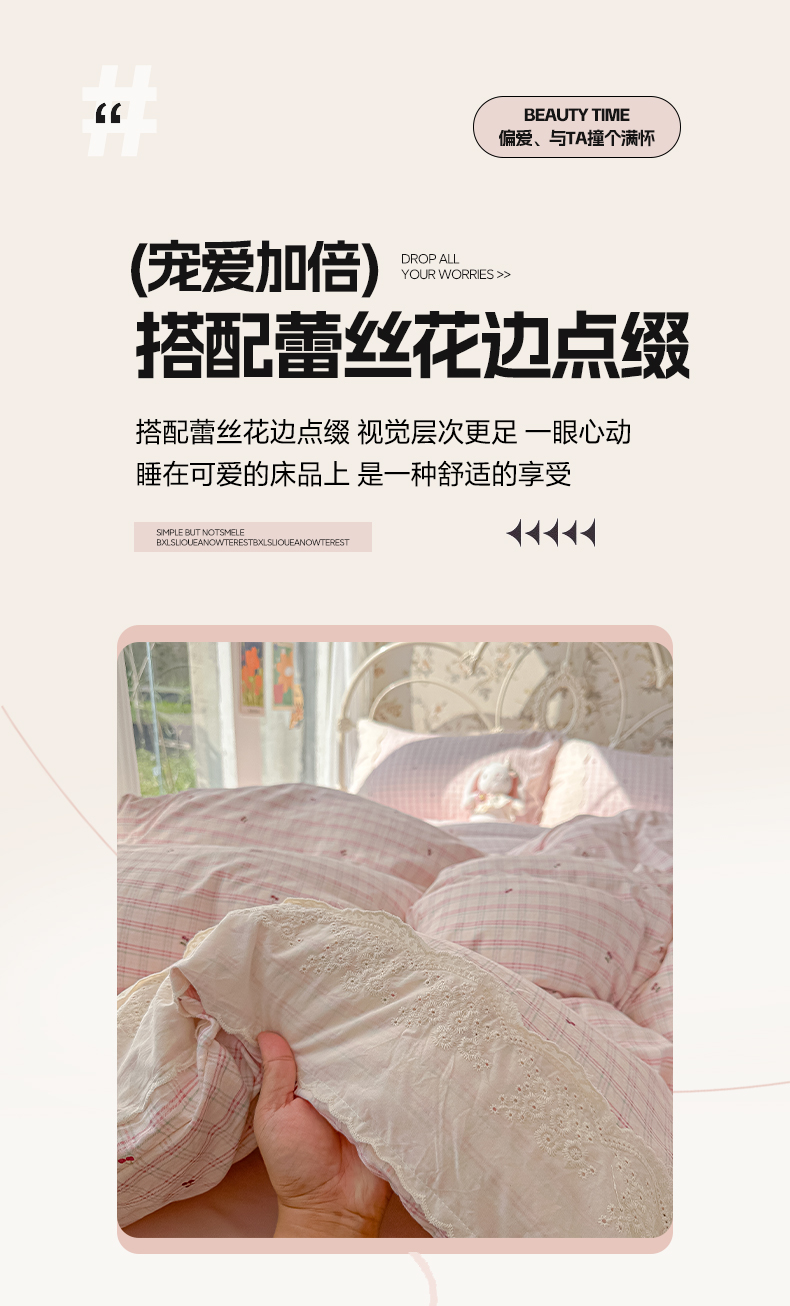 当前位置: 91家纺网 > 商品网购 > 床品套件 > 四件套 > 澜妃 2025新款糯叽叽水洗棉全棉蕾丝花边-艾意系列 艾意-樱桃计划